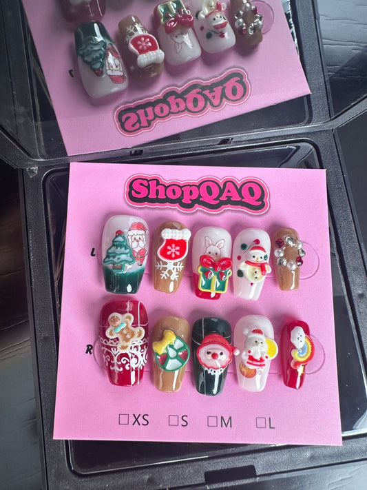 Holiday Magic Press-On Nails – Santa Claus, Winter Gifts, and Festive Designs