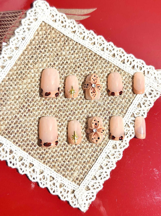 Christmas Gift Bow French Press-On Nails | Hand-Painted Square-Round Shape