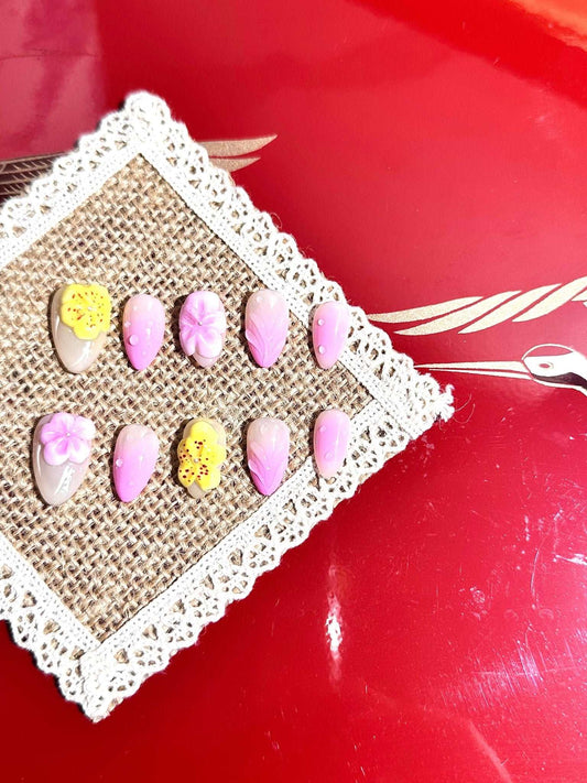 2025 Spring Bloom Pink Blush Gradient 3D Hand-Carved Floral Press-On Nails