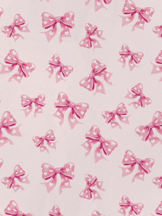 Pink Heart Bow Short Pajama Set — Pastel Bow Print Short-Sleeve Top & Shorts