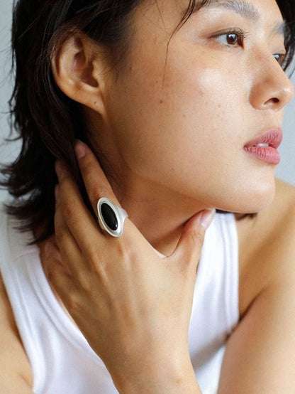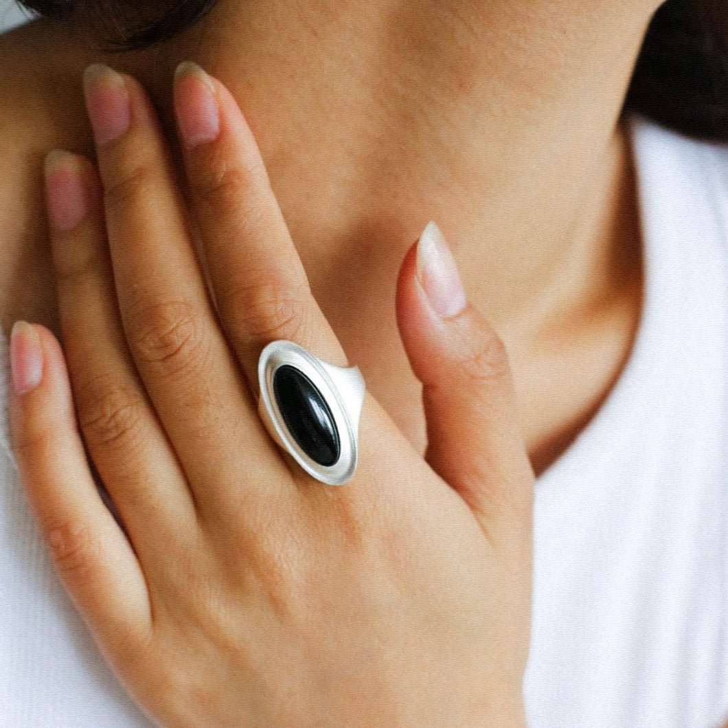 Introducing our exquisite 925 Sterling Silver Matte Black Agate and Gray Jade Oval Ring. This captivating piece features a sleek design with a matte black agate and a lustrous gray jade oval gemstone, creating a perfect harmony of elegance and sophistication. Crafted with the finest materials, this ring exudes timeless beauty and adds a touch of luxury to any ensemble. Make a bold statement with this stunning ring that complements both casual and formal occasions. Elevate your style with this unique and chic accessory.