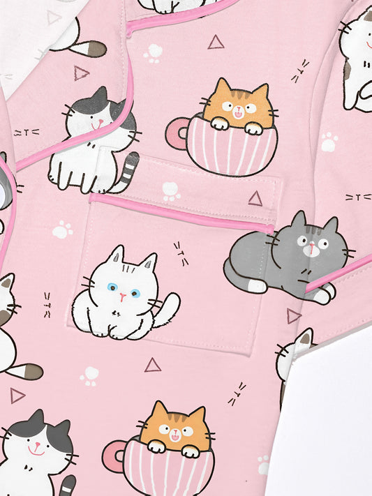 Moonlit Mews Modal Pajama Set — Silky Short‑Sleeve Button Top + Elastic‑Waist Shorts