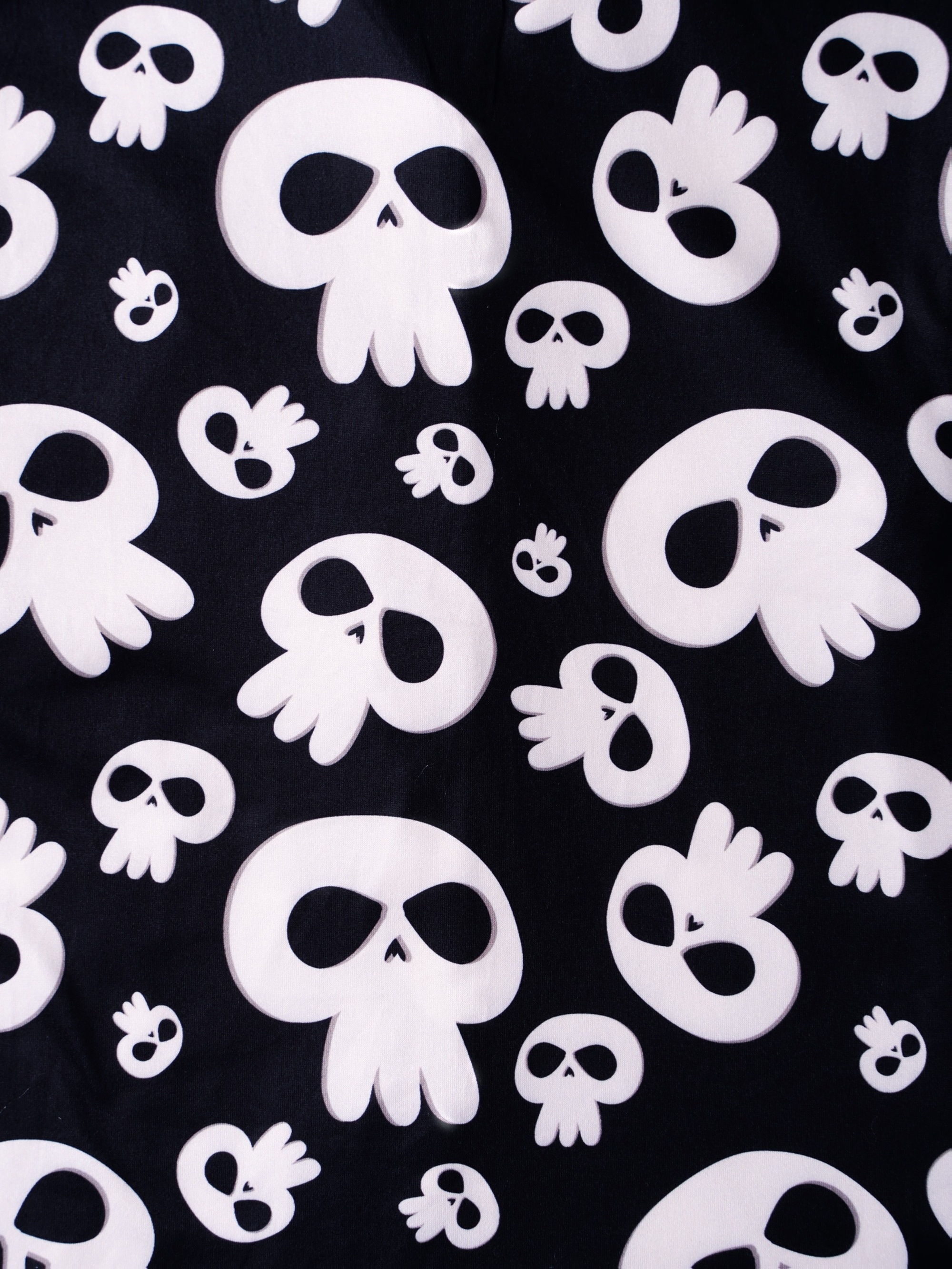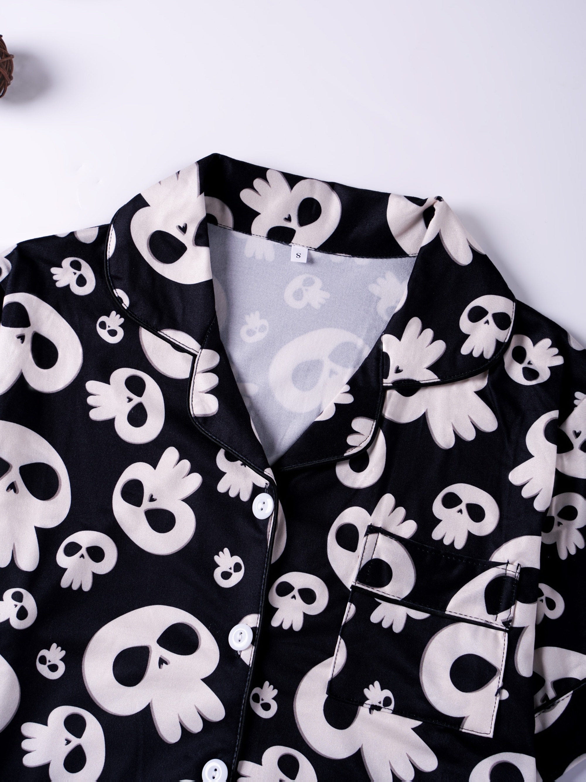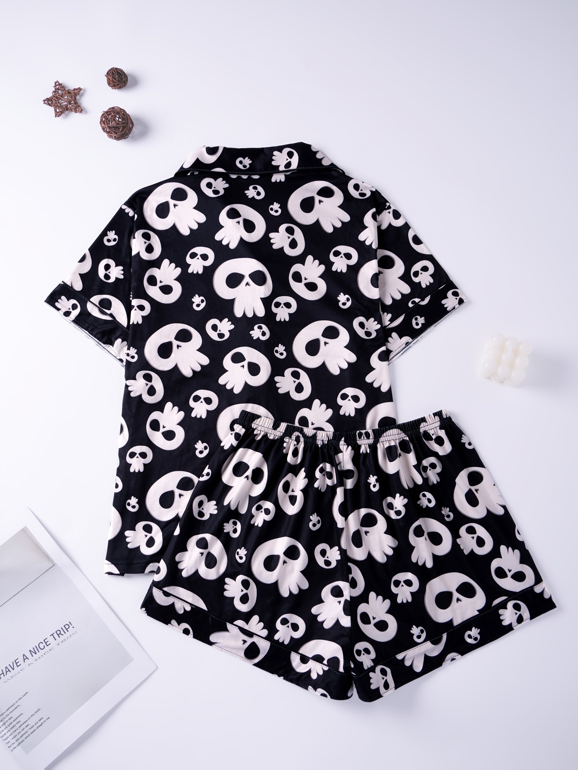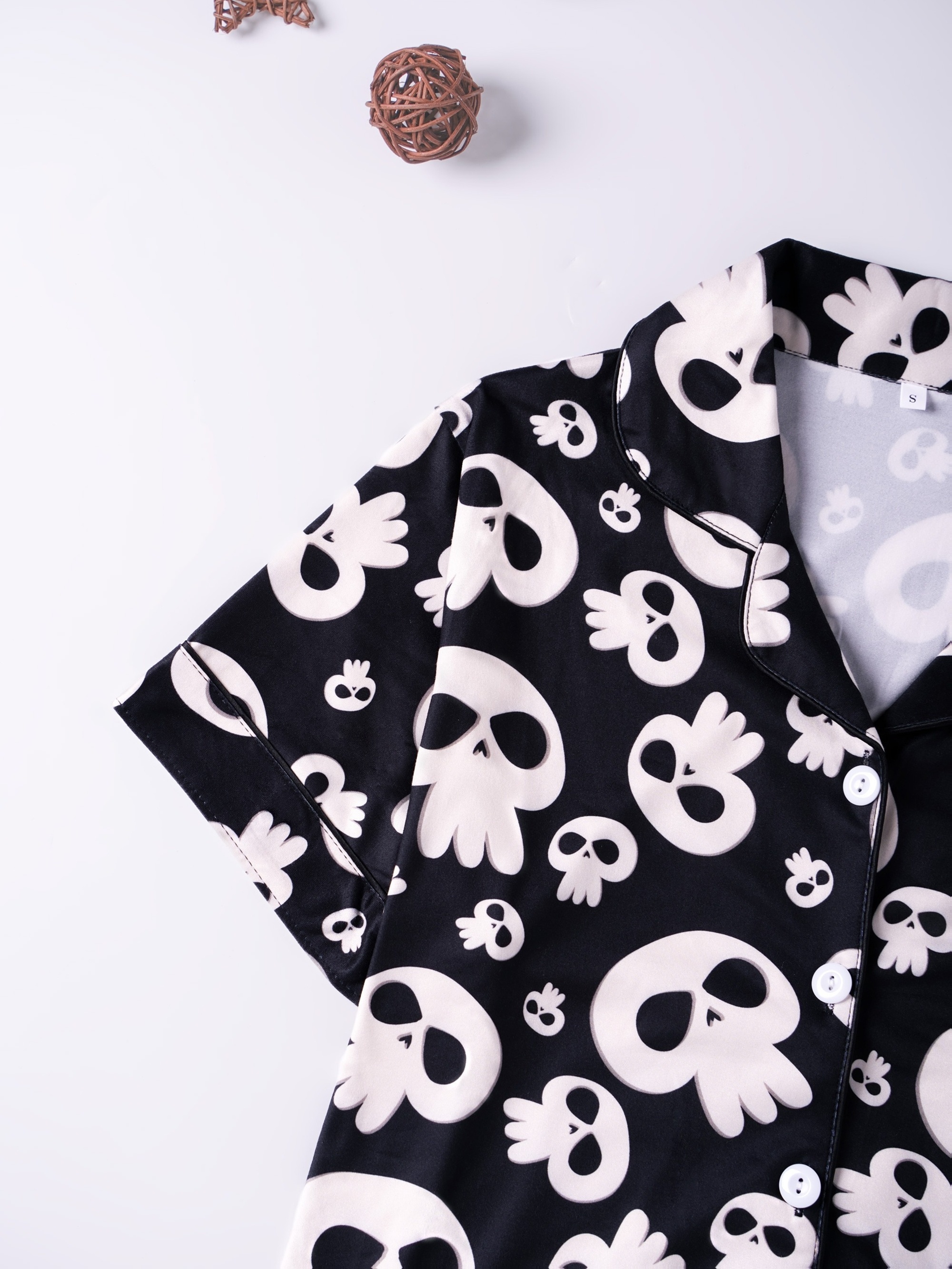Midnight Skulls Modal Pajama Set — Short‑Sleeve Button Top + Elastic Shorts