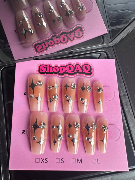 Handcrafted Press-On Nails - 'Blush Starburst' Collection: Sweet & Cool with High-End Touch