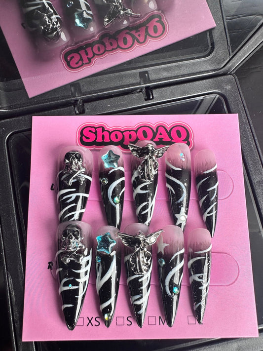 Yabi Culture Gothic Press-On Nails | Handcrafted Y2K Demon Spider Skull Dark Punk Removable Nail Tips