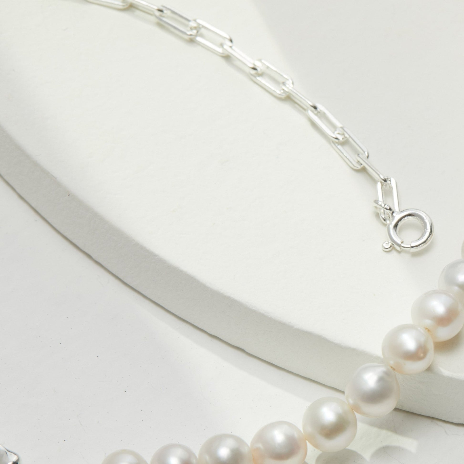 Our 10MM large flawless round pearls exude a gem-like radiance, carefully selected to ensure perfection. The design of the sterling silver necklace adds a modern and futuristic touch, infusing pearls with a fresh sense of life and charm.