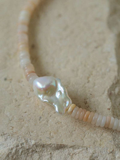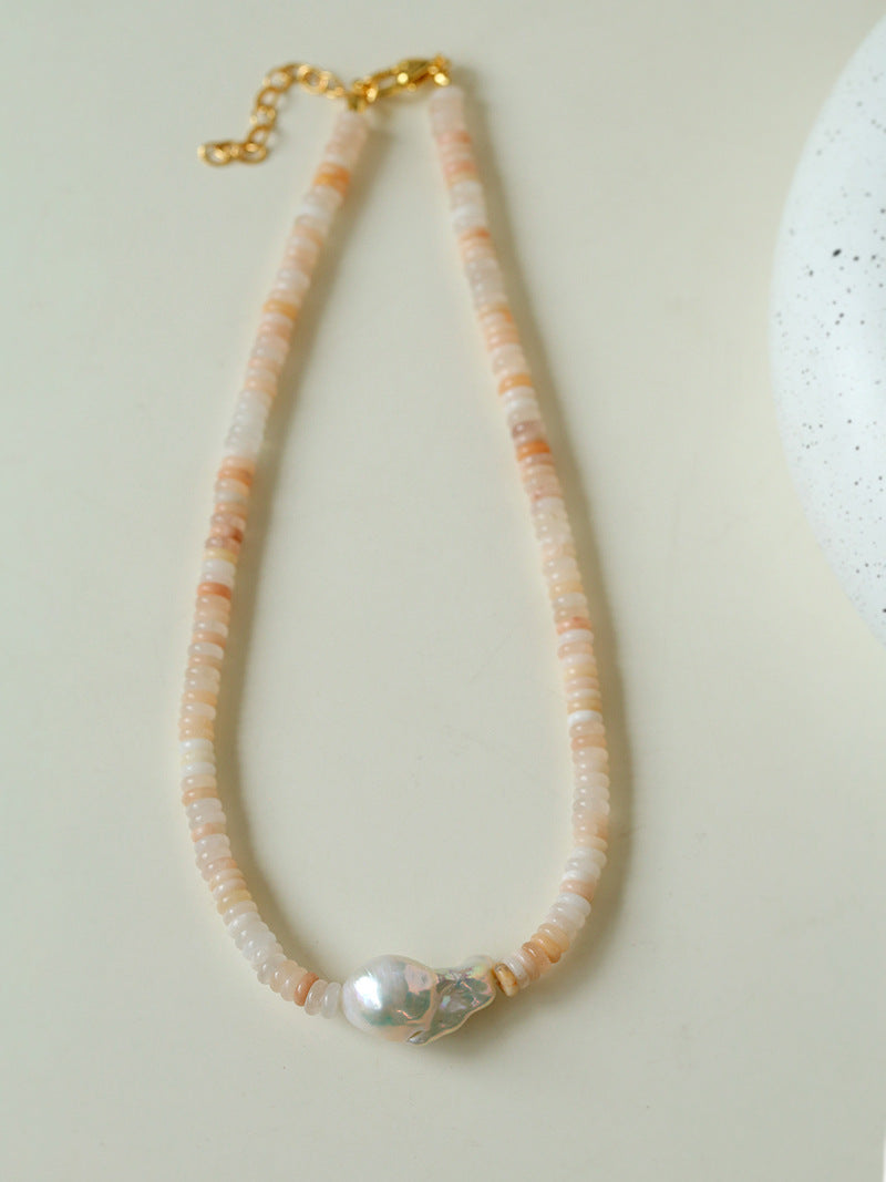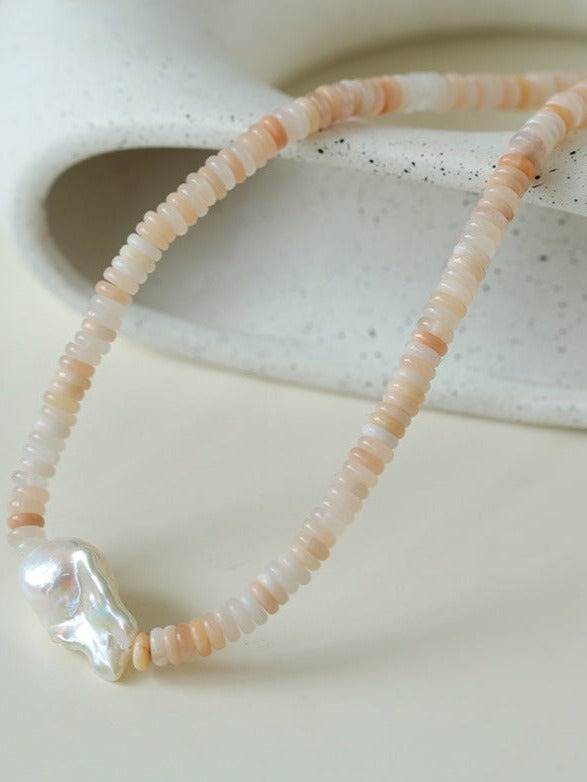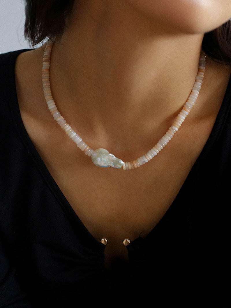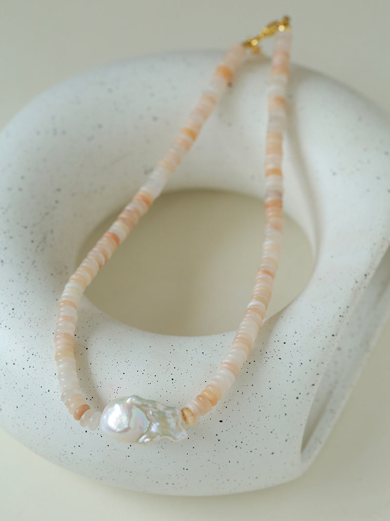 Embrace the enchanting beauty of the baroque pearls and blushing natural stones, Elevate your style with this exquisite necklace, a symphony of elegance and sophistication that adds a touch of grace to any occasion.