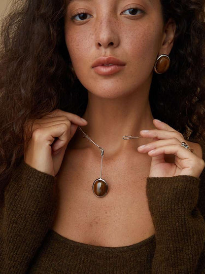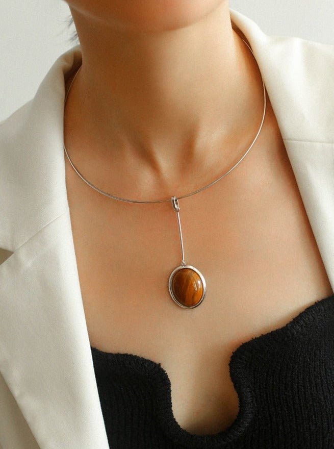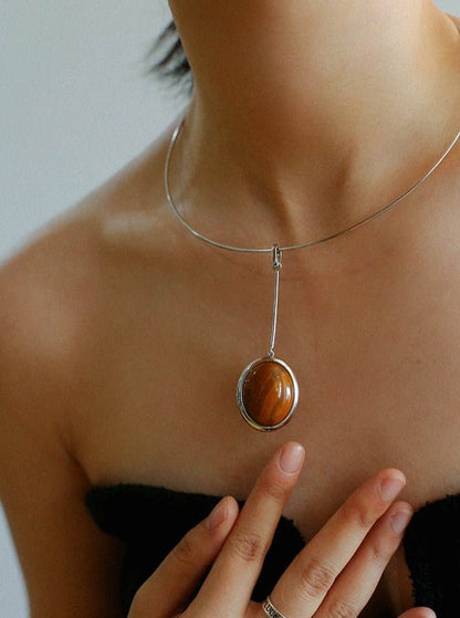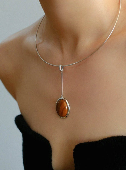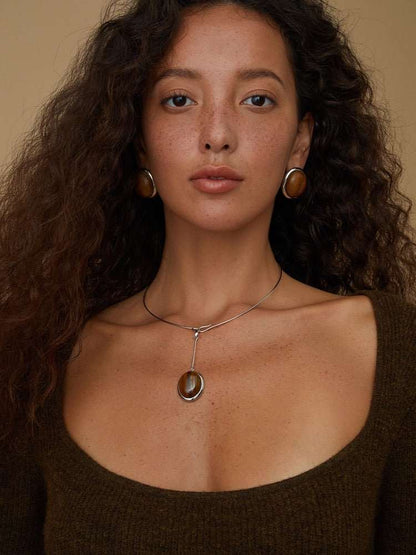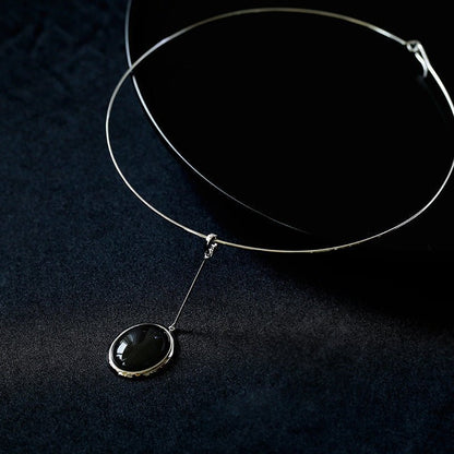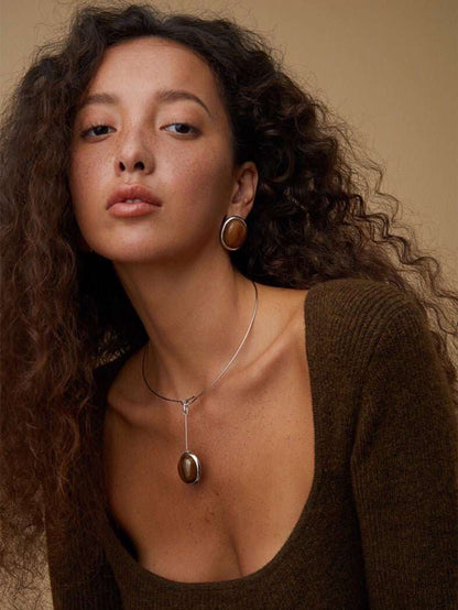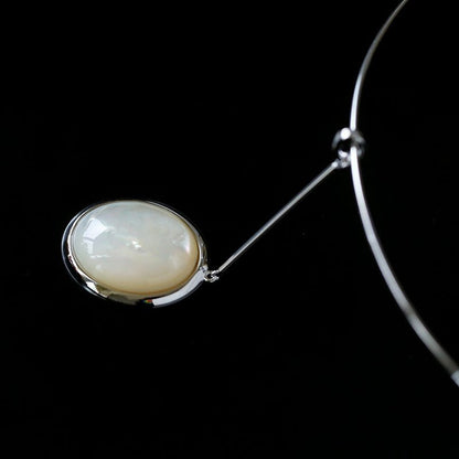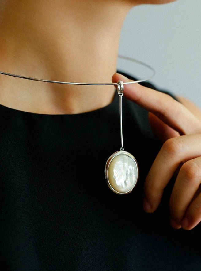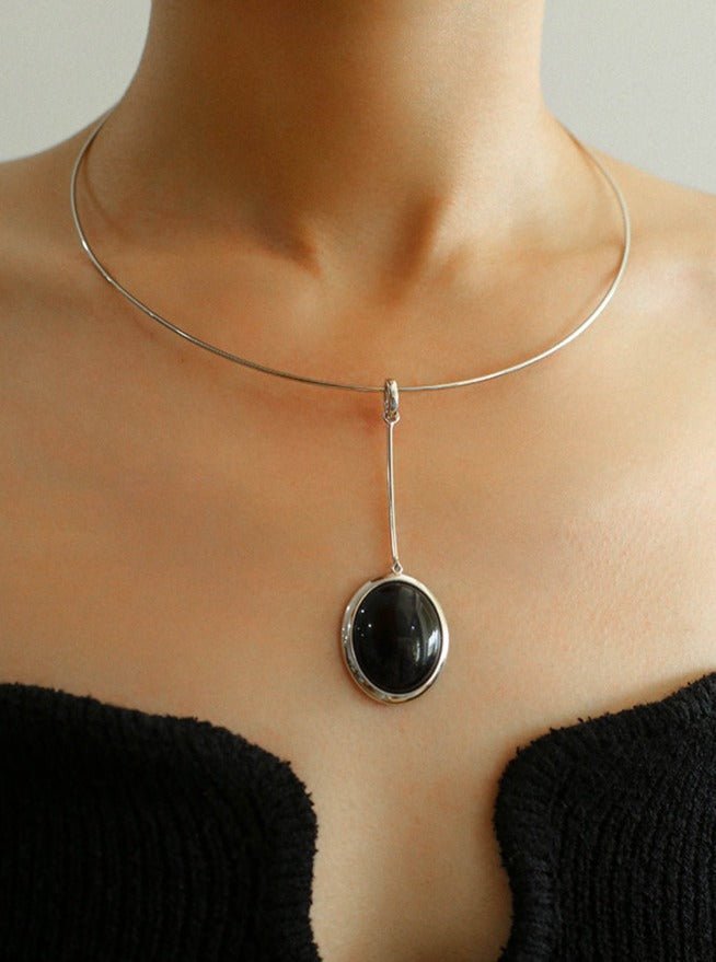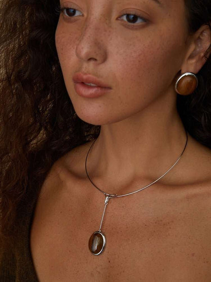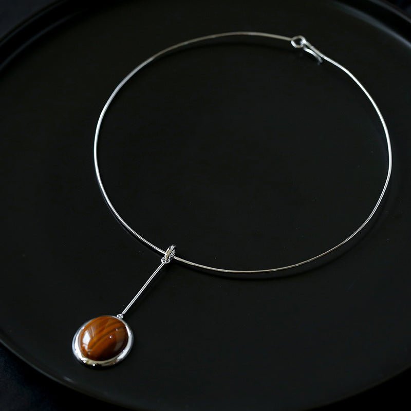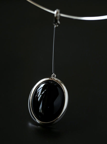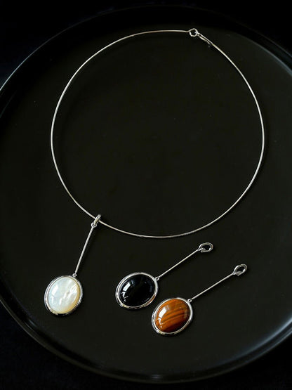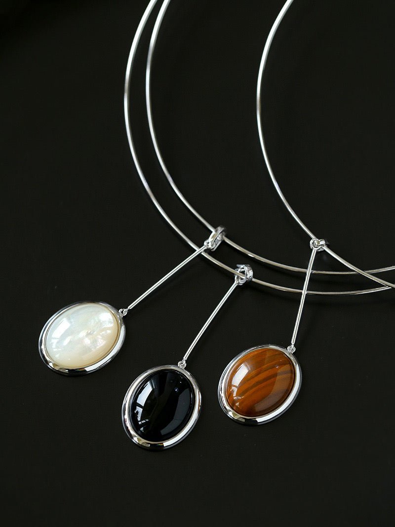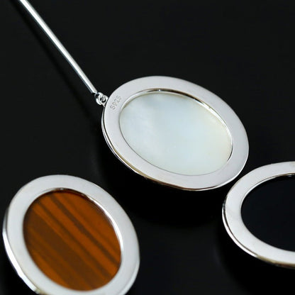 925 Silver Necklace: Wood-grain Marble&Black Onyx & White Mother of Pearl Pendant