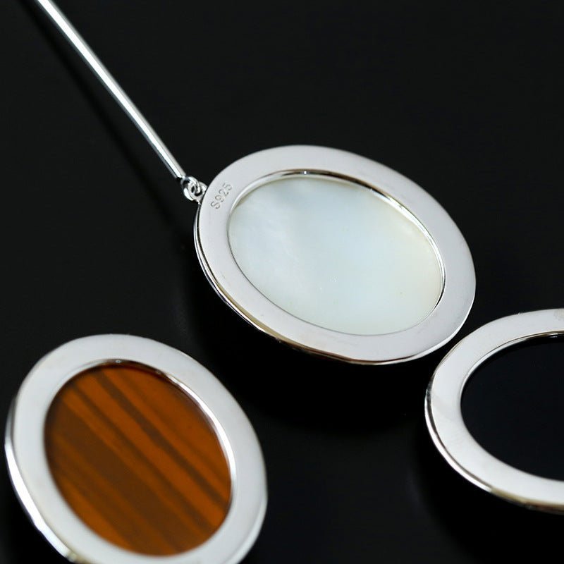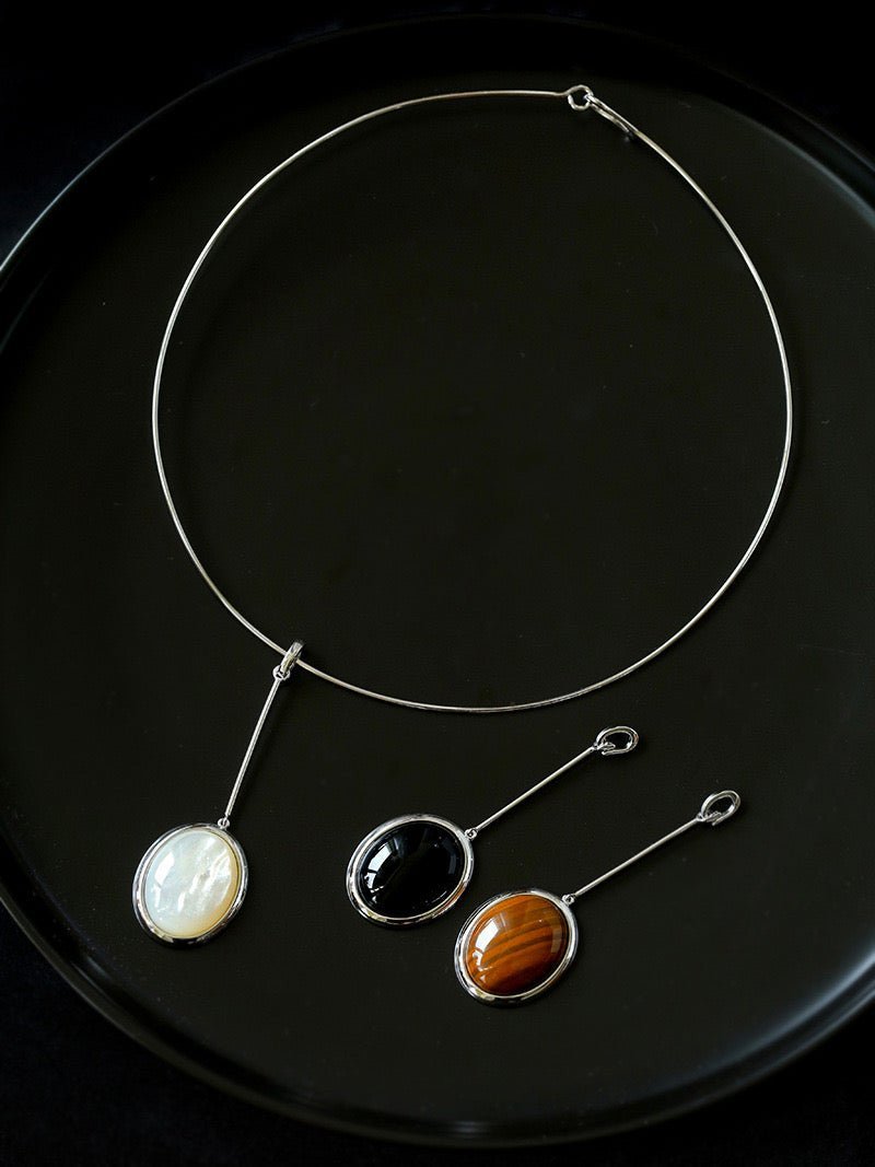 Material: silver-plated/925 silver/black agate/white mother-of-pearl/wood-grain marble