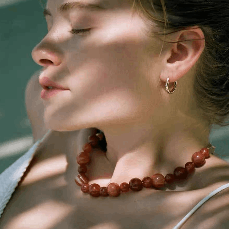 Transform your look with our Boho style Crystal necklace! The stunning crystal stone, in a beautiful amber color, exudes an effortless bohemian charm. Elevate your fashion game for 2024 and beyond with this must-have accessory. Add a touch of elegance and whimsy to any outfit. Perfect for any stylish soul!