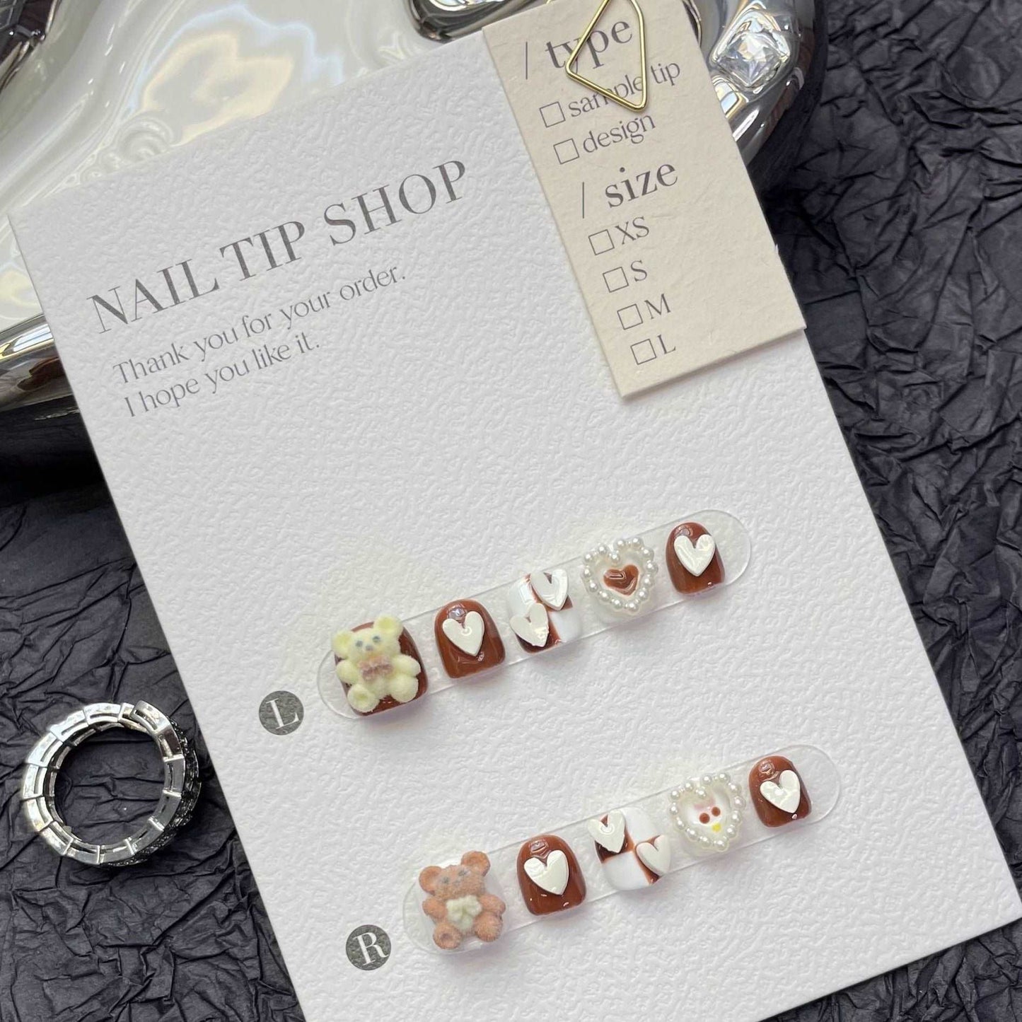 Introducing our adorable and stylish Brown Bear Heart Press On Nails for kids, adding a touch of fun and vibrancy to their little fingertips. These cute press-on nails are inspired by charming bear characters and lovely heart patterns, providing a playful and delightful decoration for children's nails.