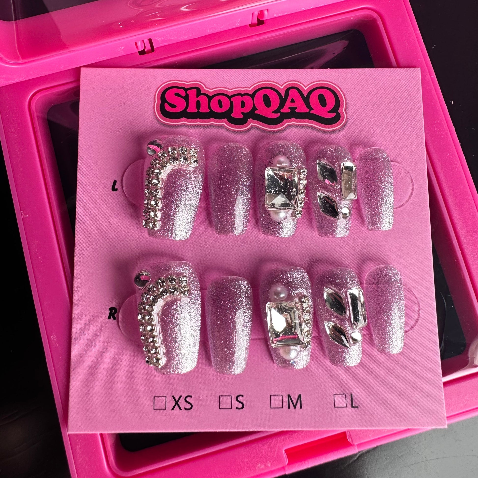 Each nail is meticulously handcrafted from high-quality materials to provide a secure and comfortable fit. The set includes a range of sizes to ensure the perfect fit for every finger, and the nails are easy to apply and remove, offering a quick and non-damaging alternative to traditional nail extensions. Whether you're preparing for a night out, a special celebration, or simply want to add a touch of glamour to your everyday style, these press on nails deliver a salon-quality finish with maximum shine