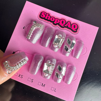 Handcrafted Cat Eye Full Rhinestone Bling Press On Nails – Ultimate Sparkle & Glamour