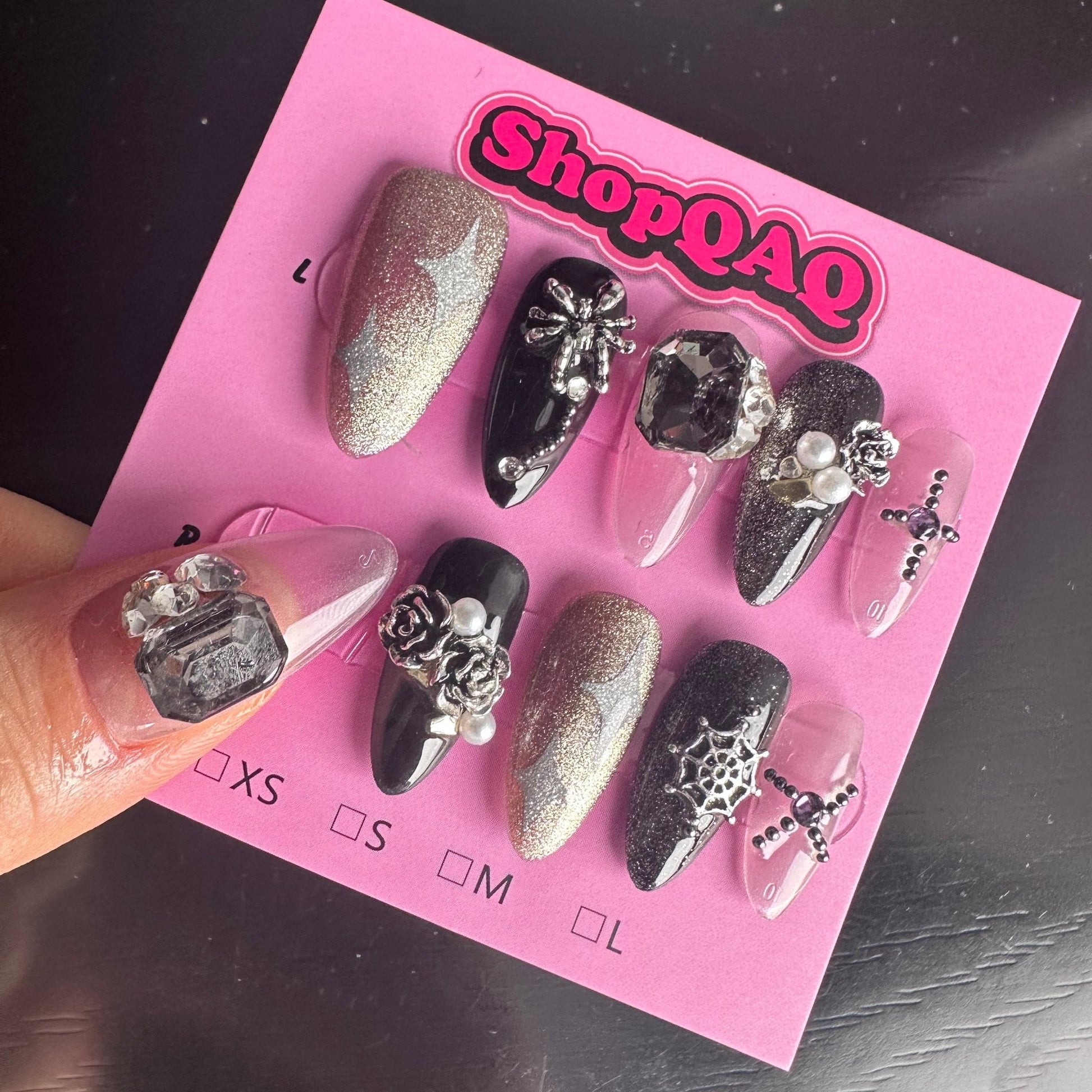 - Handcrafted Artistry: Each nail is intricately handcrafted, combining the mystique of dark cat eye effects with the timeless elegance of rose designs.