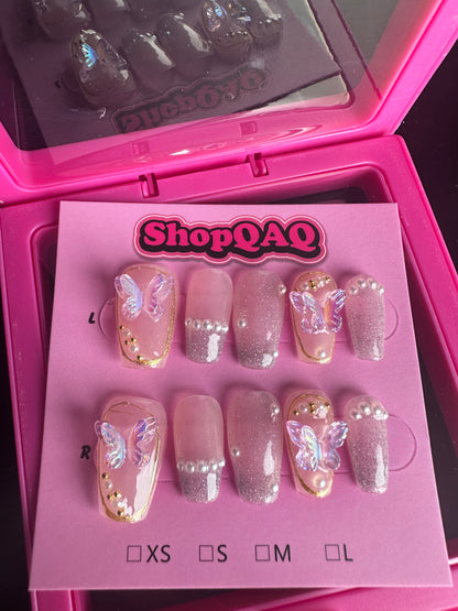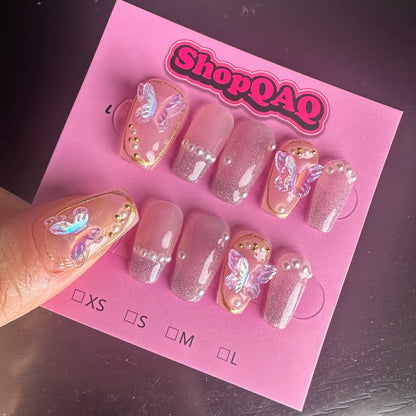 Add a touch of ethereal beauty to your bridal look with our Iridescent Aurora Butterfly Gradient Reflective Shimmer Rhinestone Press-On Nails. These luxurious, handcrafted nails feature a stunning gradient design with reflective rhinestones, creating an ice-clear, aurora-like effect that is both dazzling and enchanting. Perfectly accented with delicate 3D butterflies, these nails are ideal for brides seeking a dreamy, fairy-tale finish.