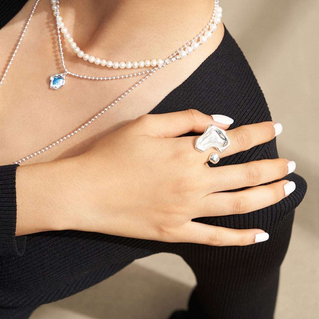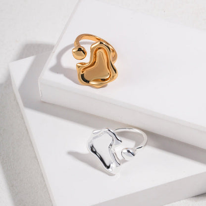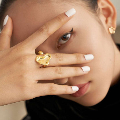 The ring features an irregular love heart design, with widths of approximately 6mm and 17mm respectively, creating a charming and unique look. The ring is adjustable and can comfortably fit US sizes 5 to 7, allowing for a perfect fit on any finger.