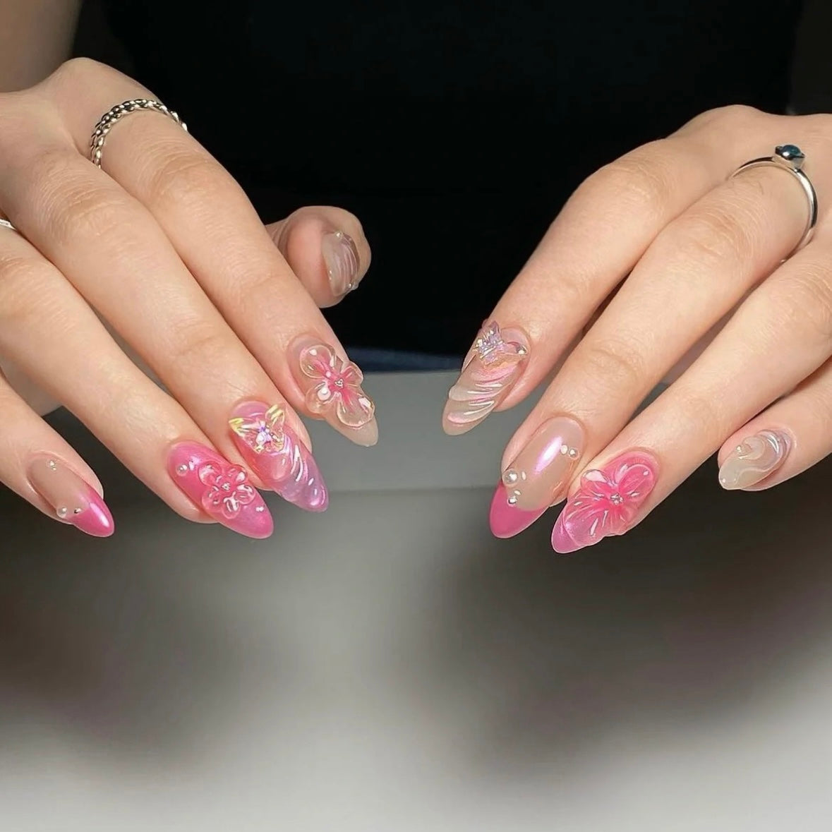 Add a touch of elegance and sparkle to your nails with our Pink Aurora Crystal 3D Flower Nails. These luxurious, detachable handmade nail art pieces are designed to captivate with their stunning pink aurora effect and intricate 3D flower accents. Perfect for those who love to shine, these nails are ideal for any special occasion or everyday glamour.