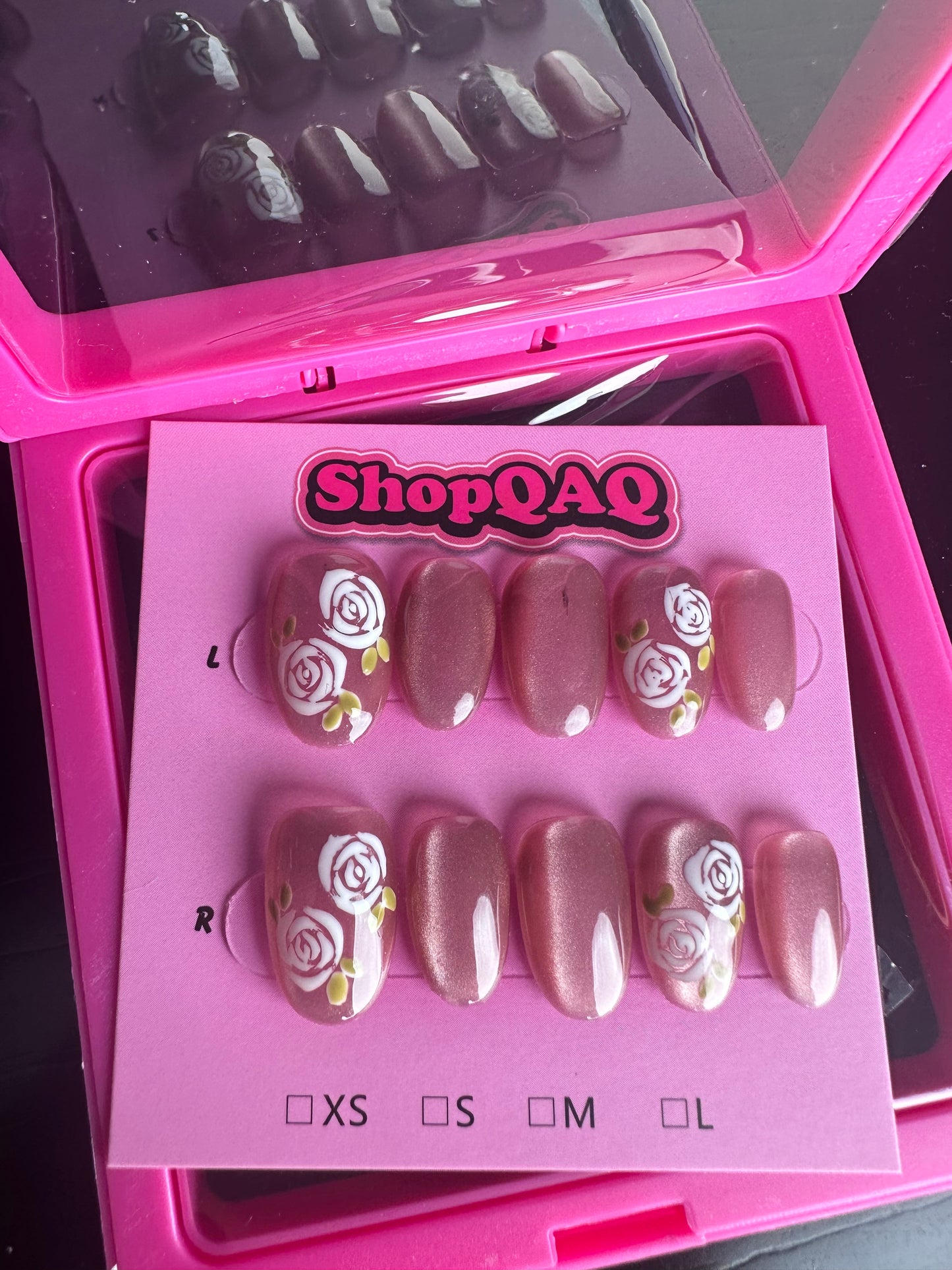 Elevate your style with the graceful beauty of our "Spring Rose" Hand-Painted Cat Eye Press-On Nails. Order now to add a touch of timeless elegance to your look.