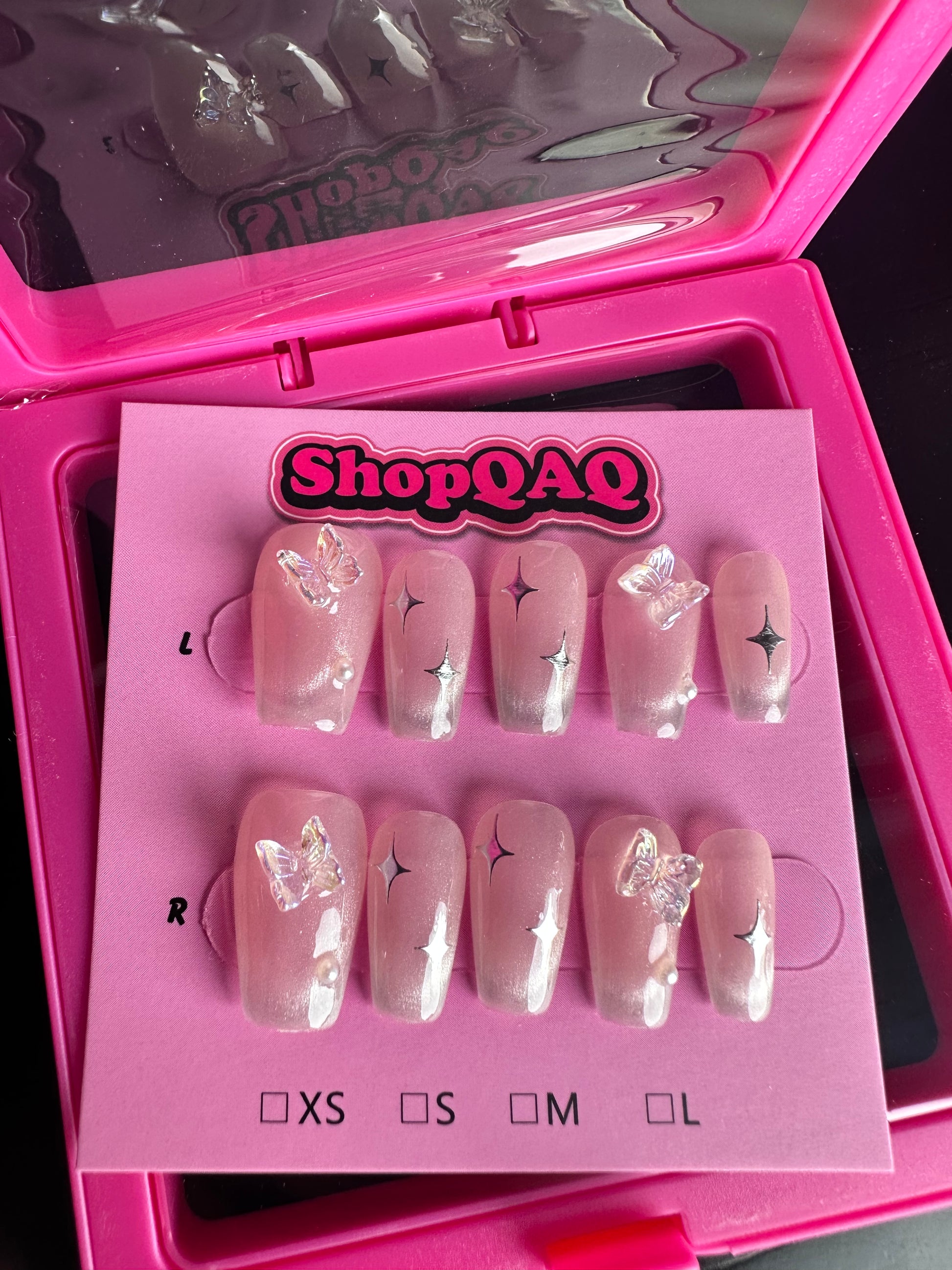 • Ice-Transparent French Design: Features a chic French manicure base with an ice-transparent finish that creates a sleek, elegant look.