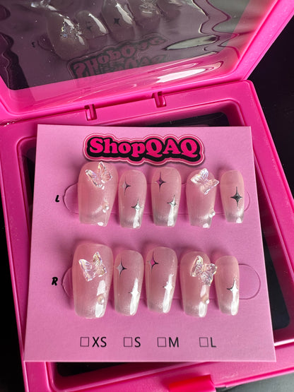 Illuminate your style with our "Starlight Flow" Ice-Transparent French Cat Eye Press-On Nails. Featuring an ethereal ice-transparent base with crystal cat eye effects, these nails exude a pure, sophisticated charm that enhances any look. Perfect for those seeking a high-end, elegant manicure, these press-on nails combine modern aesthetics with timeless beauty.