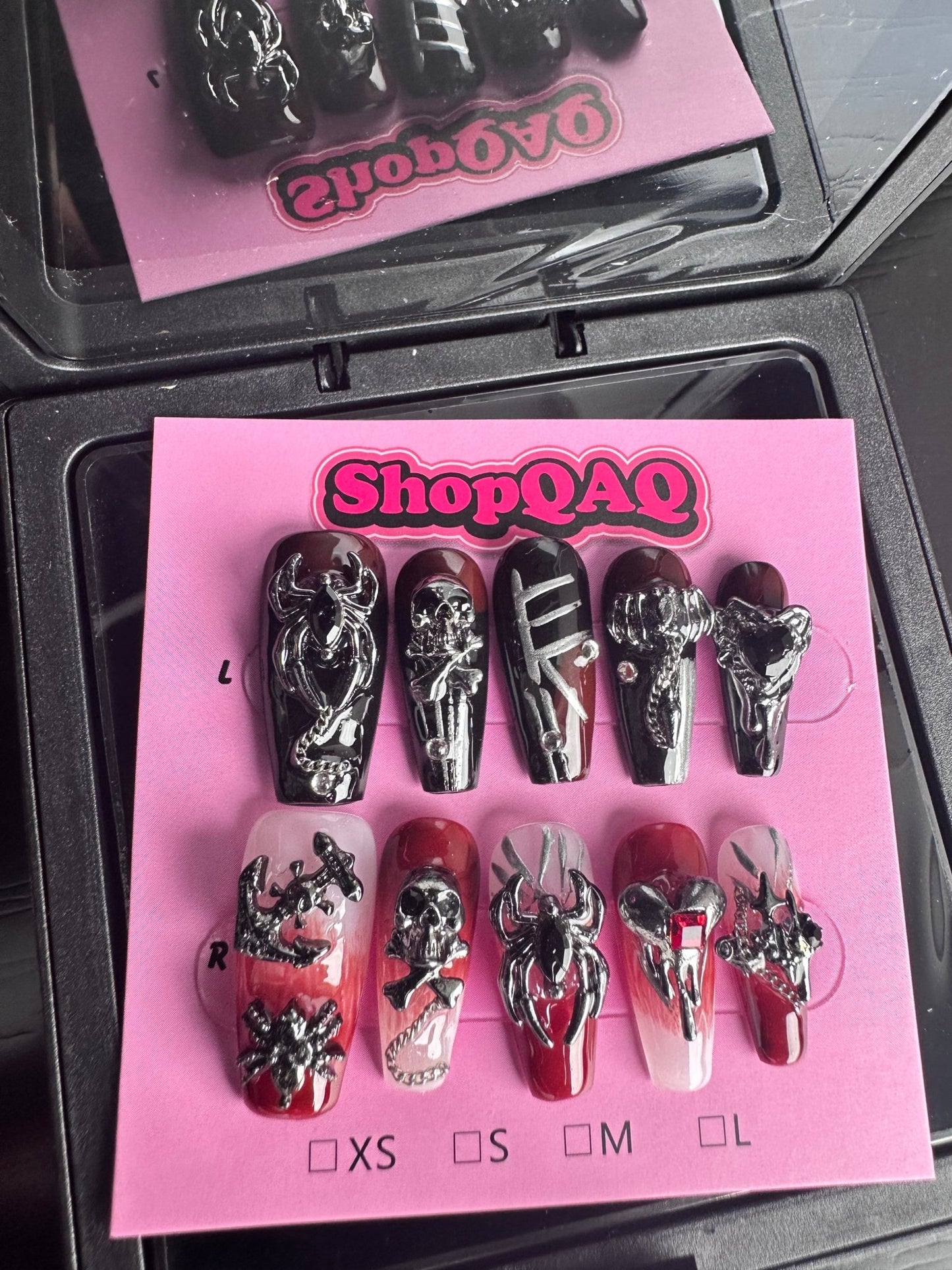 • Dark Punk Aesthetics: Infused with gothic elements, including demon, spider, and skull motifs, these nails exude a dark, punk rock vibe.