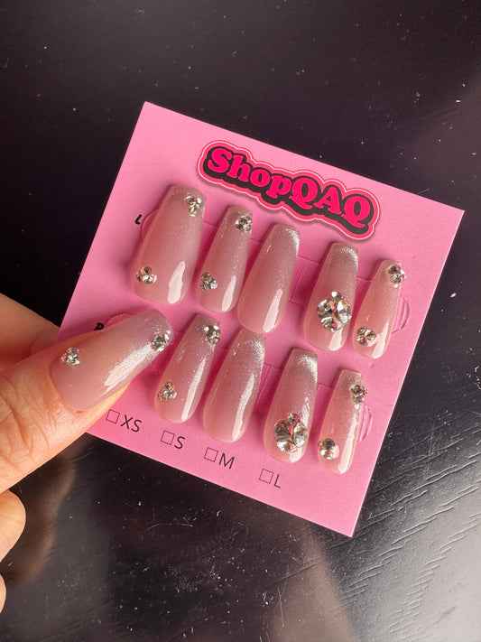 Custom Handcrafted Press-On Nails - Gel Cat Eye & Diamond Bridal Nails, Removable & Safe for All