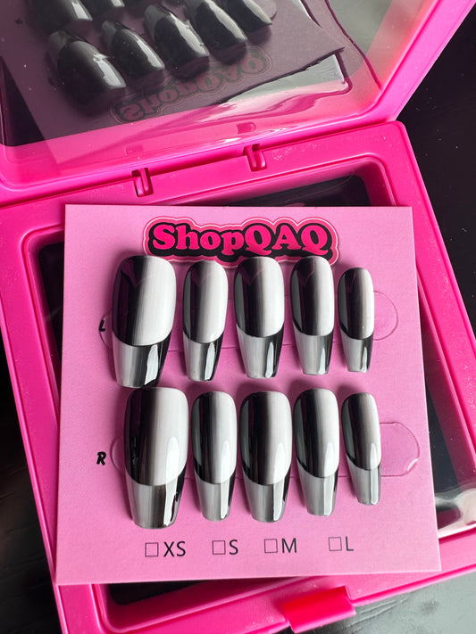 Gradient Metallic Dark Cyberpunk Press-On Nails - Unique Handcrafted Nail Art for a Bold Look