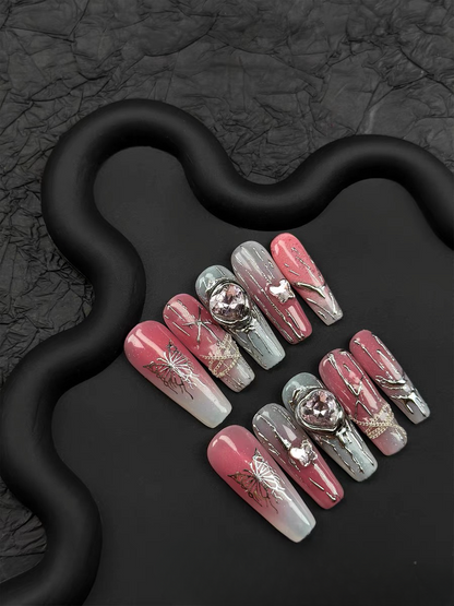 Introducing our Handcrafted 3D Butterfly Wearable Armor featuring a stunning gradient of pink and white hues, adorned with intricately hand-drawn 3D butterfly motifs. This exquisite piece combines elegance with artistry, creating a captivating accessory that enhances your style with its graceful design.
