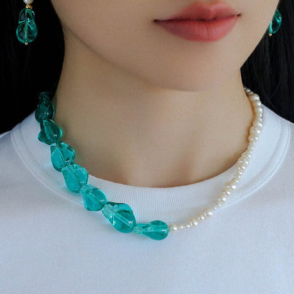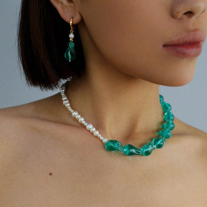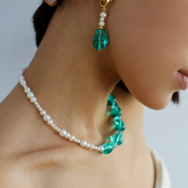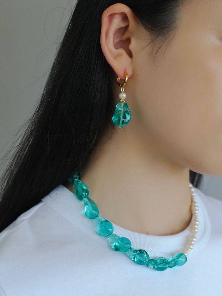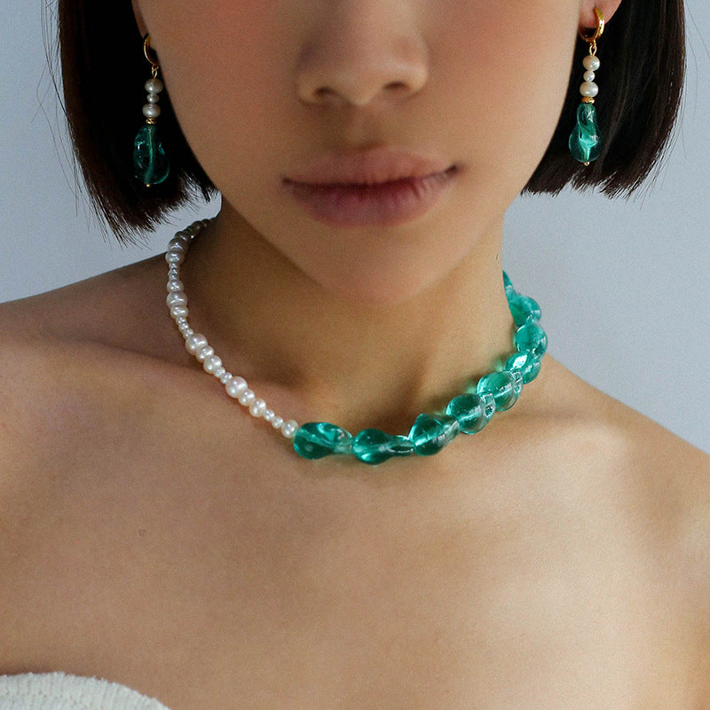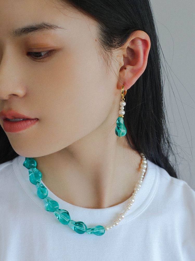 Material: Glass + Freshwater Pearl + 18K Gold-Plated Copper