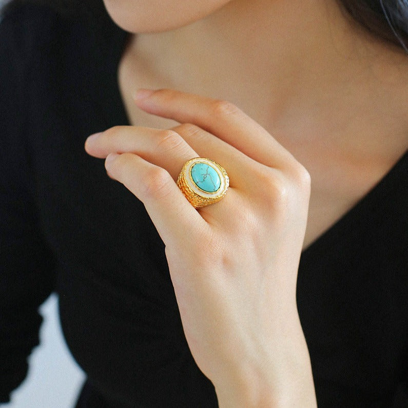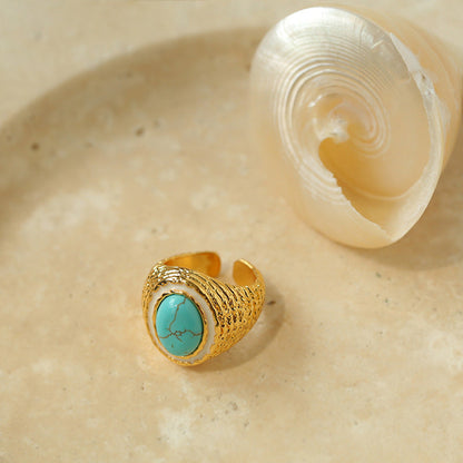 The edges of the gemstone are adorned with raised twisting patterns, resembling the texture of intertwined vines. The overall design exudes an innate organic quality, inducing a sense of relaxation and delight. This ring effortlessly accommodates diverse tastes, allowing individuals of varying styles to effortlessly express their unique personalities.