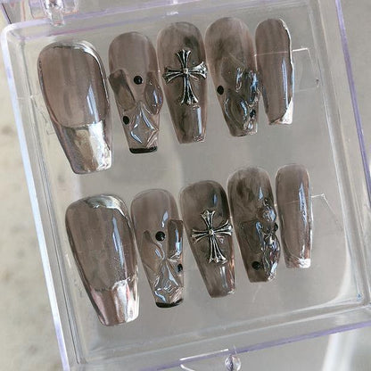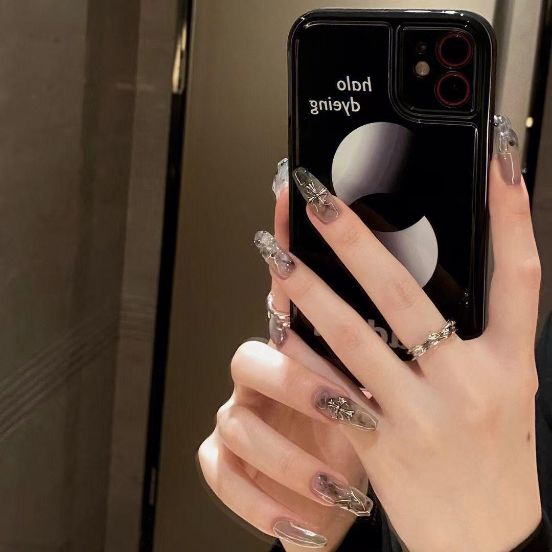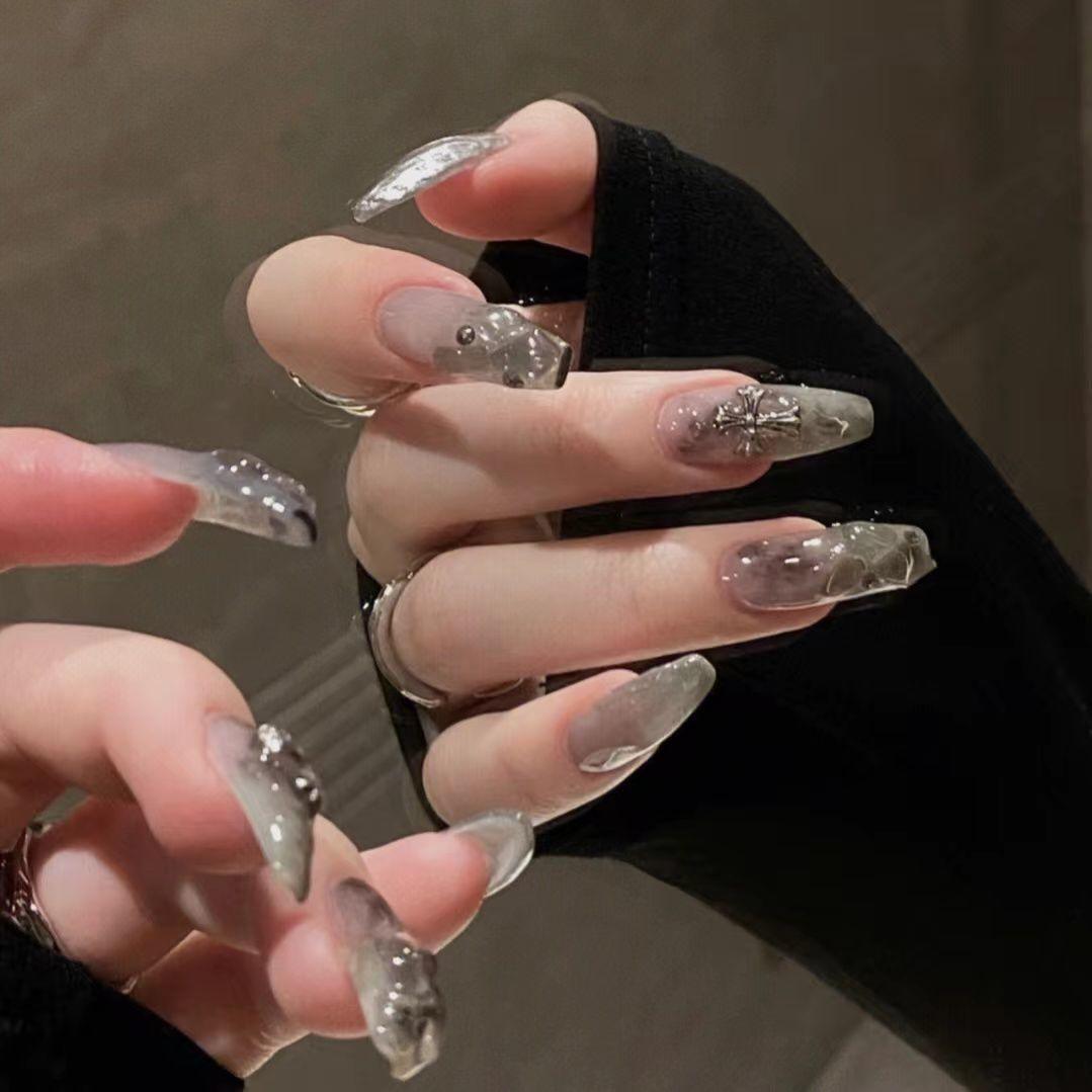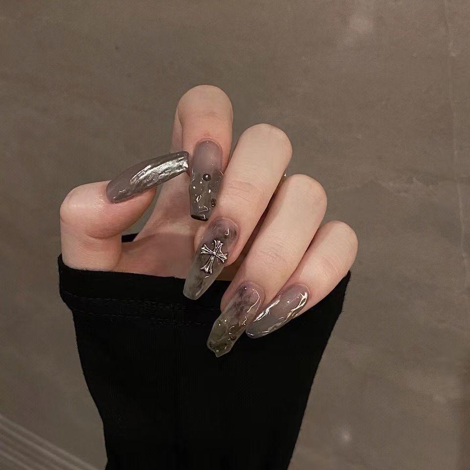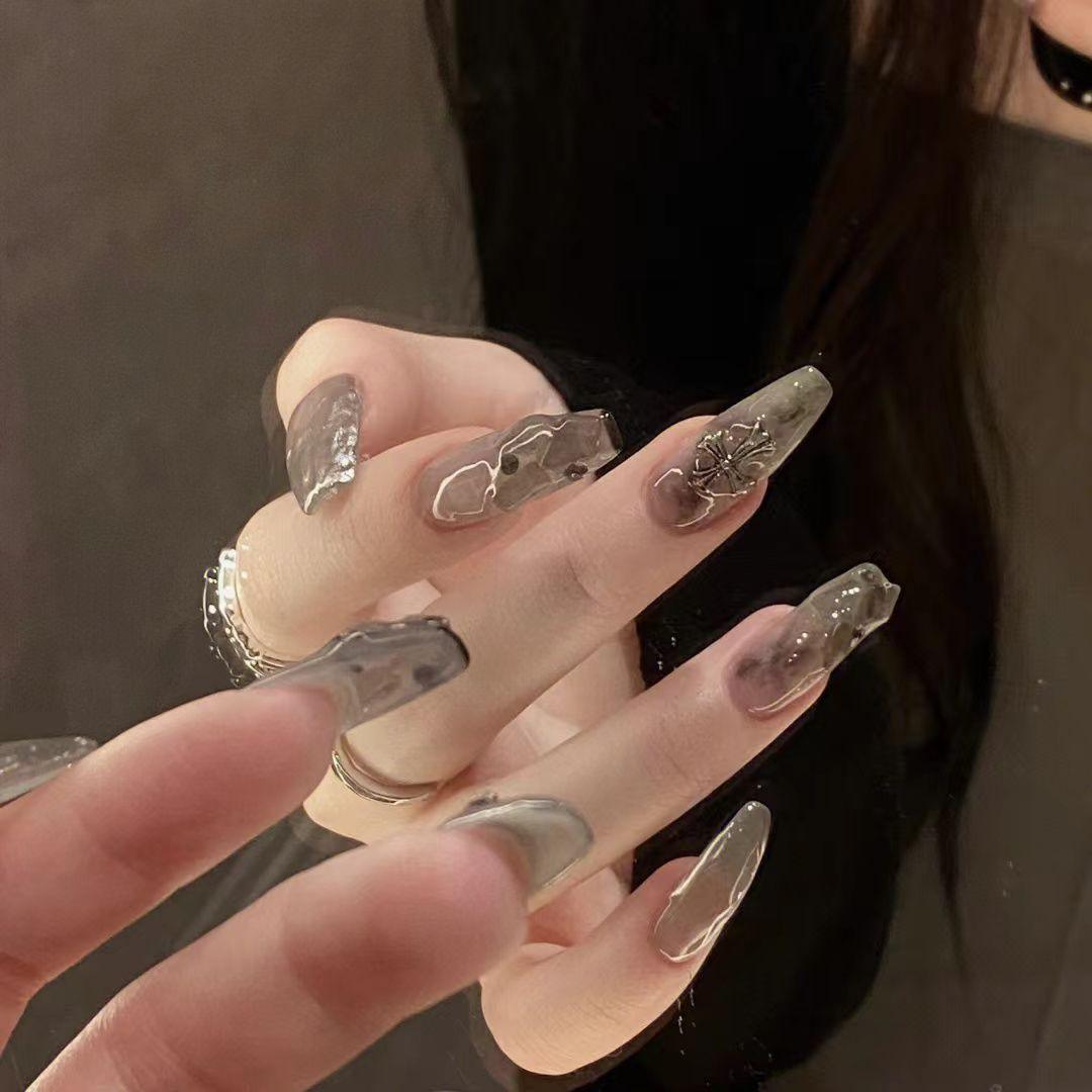 These Handmade False Nails in Black Smudged Magic Mirror Powder are a must-have for any edgy and fashionable look. The Crowe Heart Shaped design adds a touch of playfulness and romance to your manicure. The magic mirror powder gives your nails a mesmerizing reflective effect, while the black smudged finish adds a unique and mysterious touch. These false nails are perfect for any occasion, from a night out with friends to a romantic date. They are easy to apply and will last for weeks with proper care.