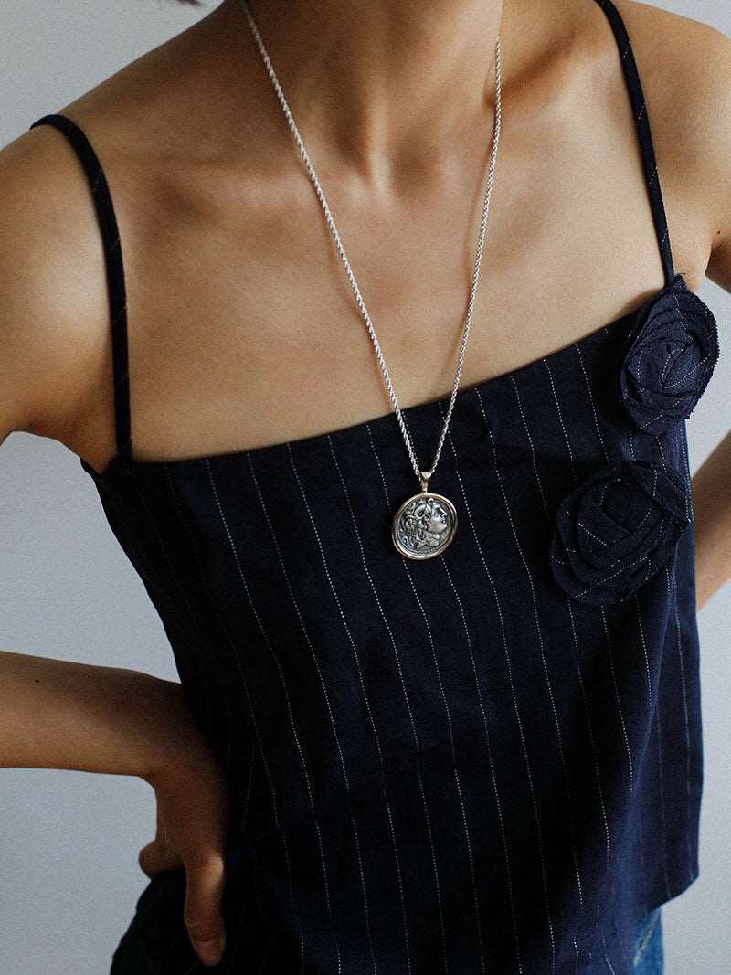 On the back is the statue of Athena, the goddess of war and the goddess of wisdom, holding the goddess of victory with a round shield.