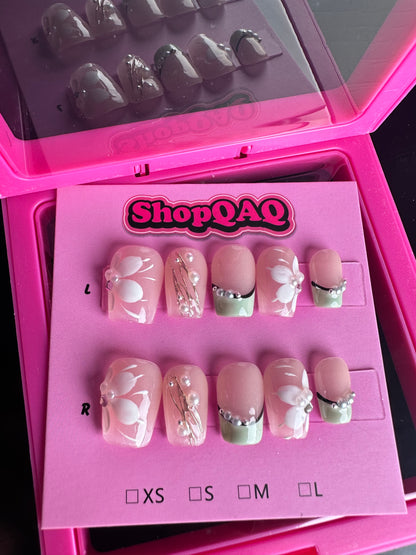 Complete your bridal look with our Hand-Painted Ice Flower Press-On Nails. Order now to enjoy an elegant, brightening, and handcrafted nail art experience for your special day.