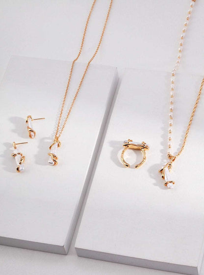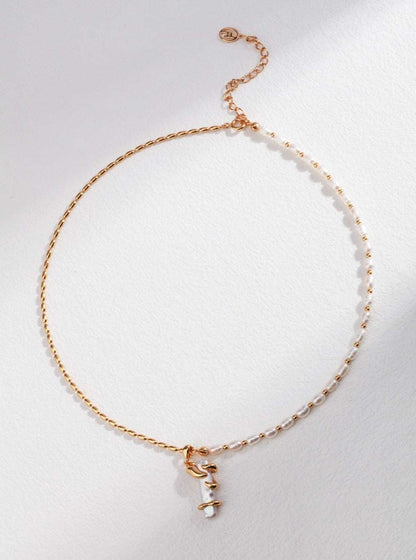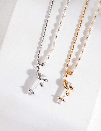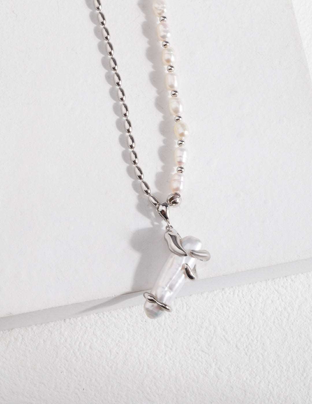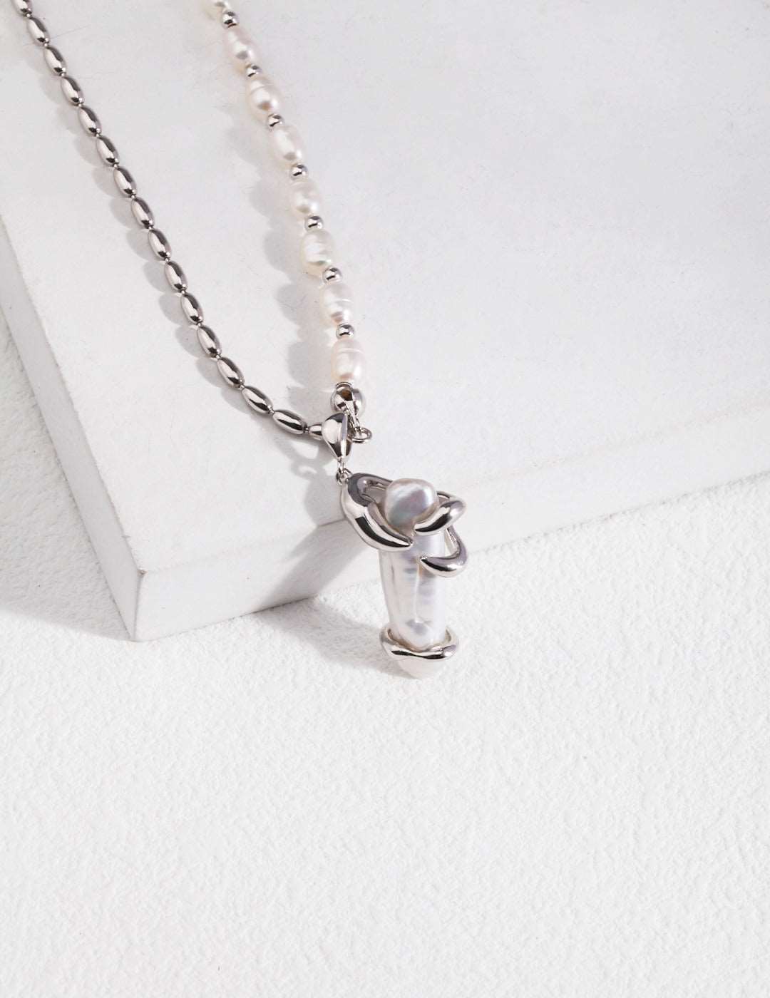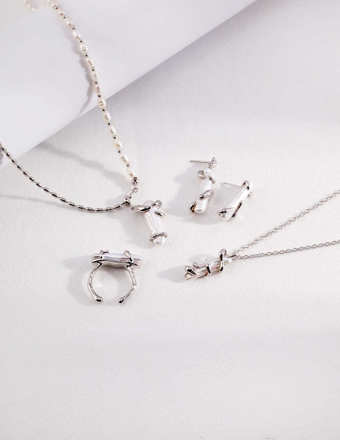 Experience the fusion of nature's elements with our pure silver and natural pearl necklace. Featuring delicate baroque pearls as the centerpiece, embraced by the fluid lines of silver, this design captures the interplay of pearl and silver radiance. A design that encapsulates both romance and individuality, inspired by the beauty of the natural