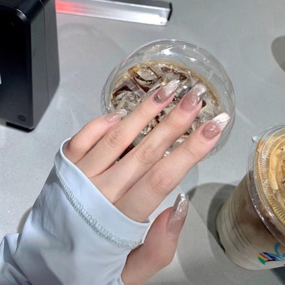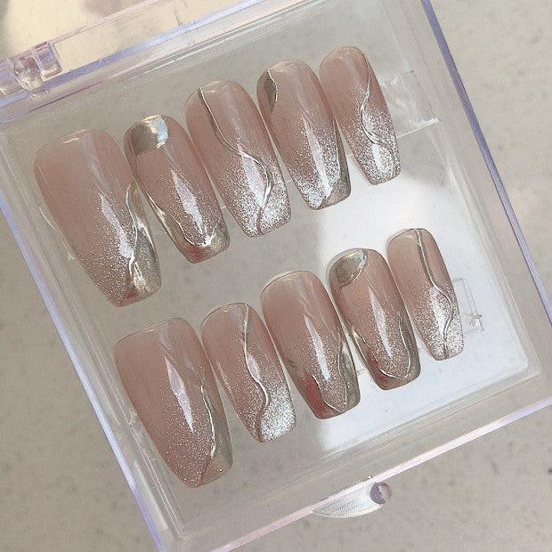 These Handmade False Nails are the perfect accessory to complete your glamorous look. The beautiful Whitening Magic Mirror Powder Quartz design will add a touch of elegance to any outfit, making you stand out from the crowd. Made from high-quality materials, these false nails are durable and long-lasting. They are also easy to apply and remove, so you can achieve a professional-looking manicure without having to go to the salon.