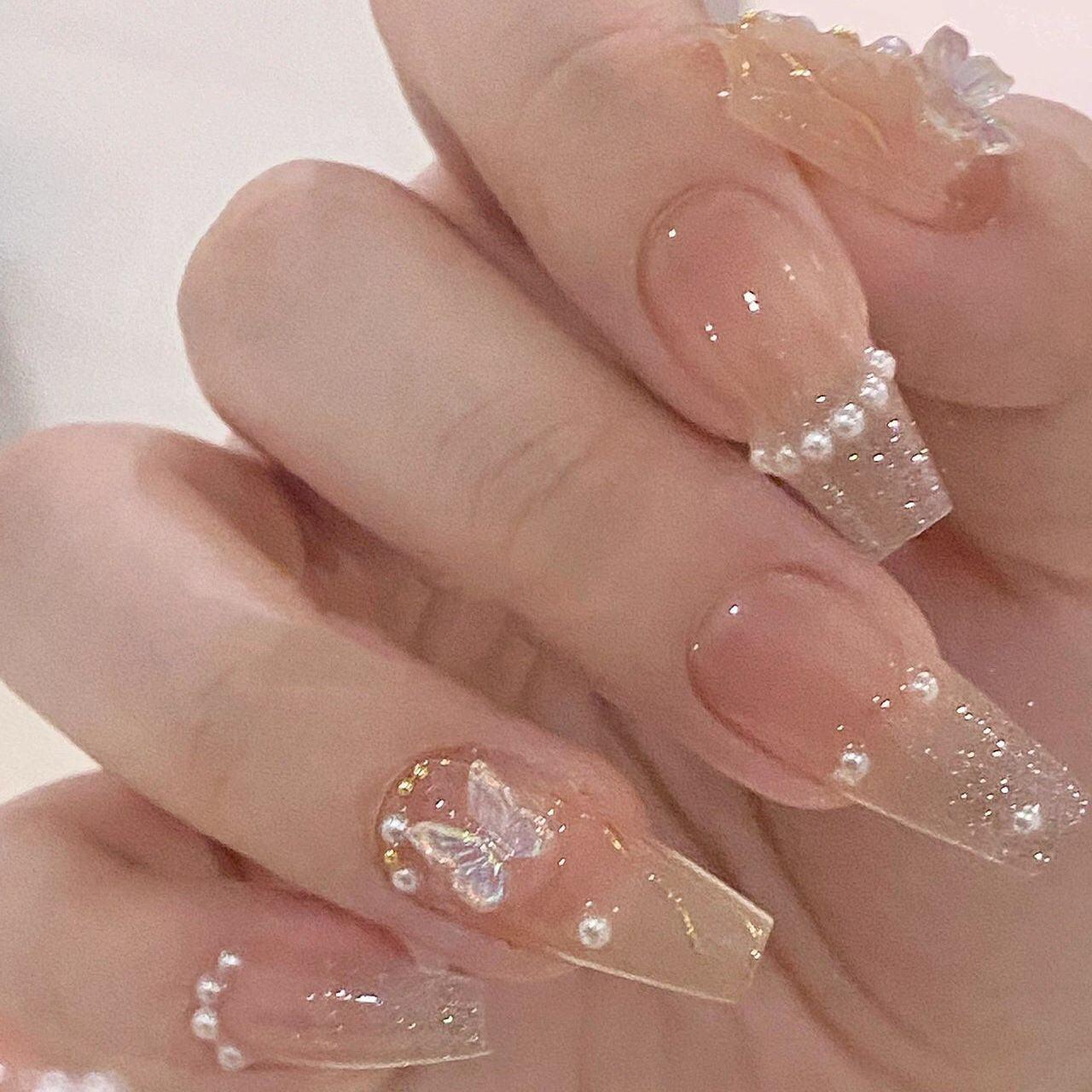 The Show White Pearl adds a touch of elegance and sophistication, while the Diamond Butterfly Nail Art design adds a whimsical touch to your nails. Whether you're attending a wedding, prom, or any other special occasion, these nails are the perfect accessory to complete your look.