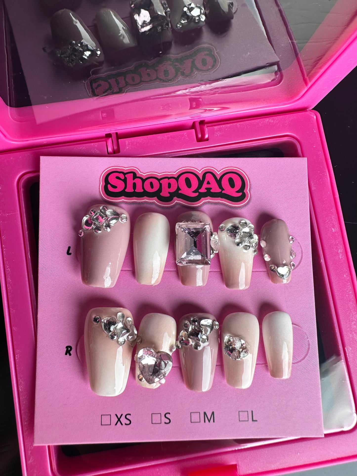 Elevate your nail style with our Handcrafted Swarovski Pink Diamond Mauve Press-On Nails. Order now to experience the luxurious and elegant beauty these exquisite nail art pieces bring to your look.