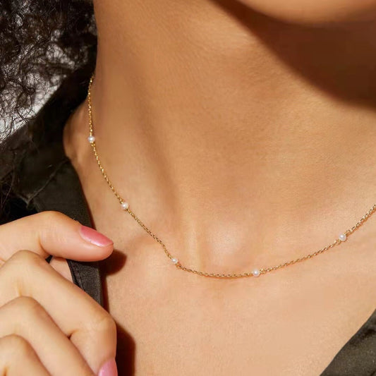 Gold Chain Spacer Natural Freshwater Pearl Necklace