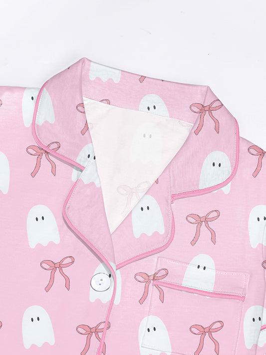 Blushing Ghosts Modal Pajama Set — Silky Short‑Sleeve Button Top + Elastic‑Waist Shorts