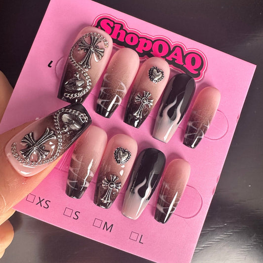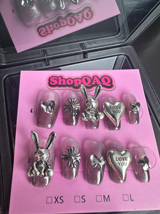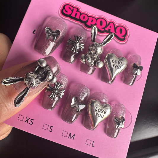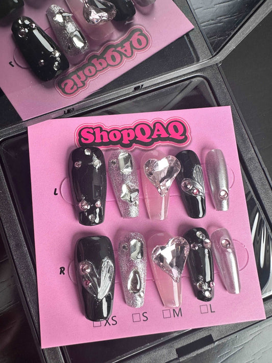 Dancing Heart" Y2K Press-On Nails | Cyber Metal Chic with High-End Handcrafted Design