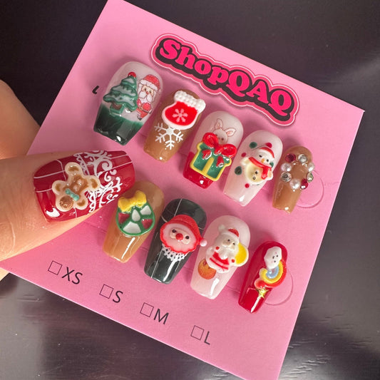 Holiday Magic Press-On Nails – Santa Claus, Winter Gifts, and Festive Designs