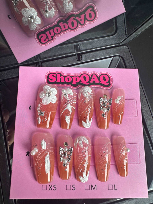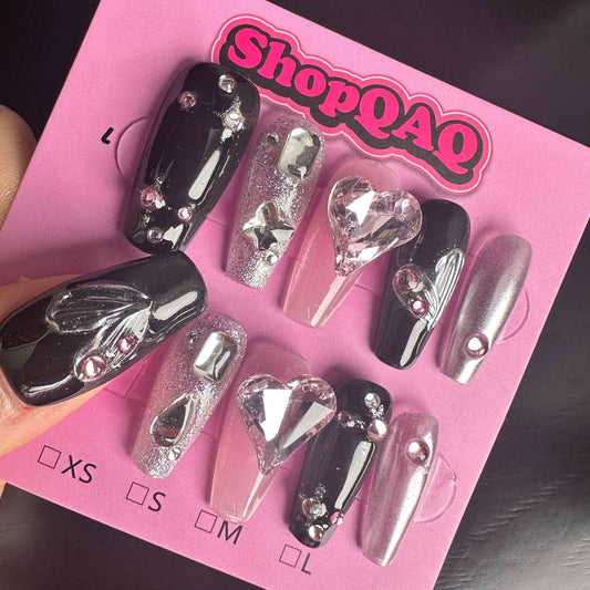 2024 New Year Collection | Handcrafted Press-On Nails – Sweet and Edgy Butterfly Design for Everyday Wear