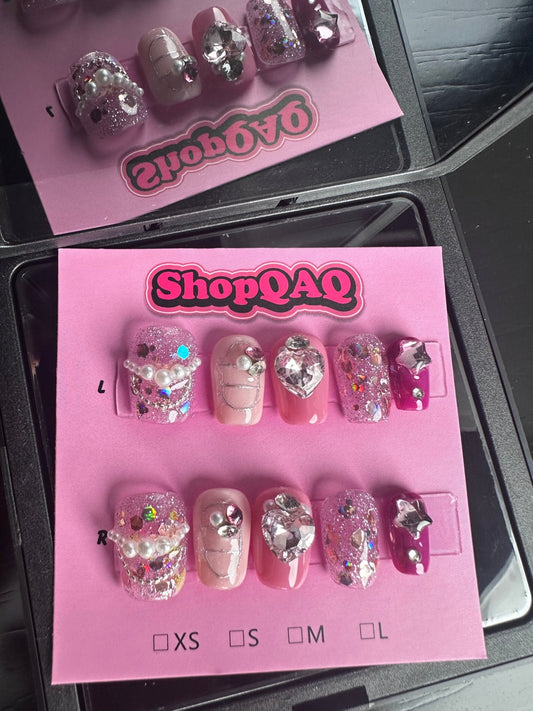 High-End Sweetheart Glitter Press-On Nails – Handcrafted Short-Length