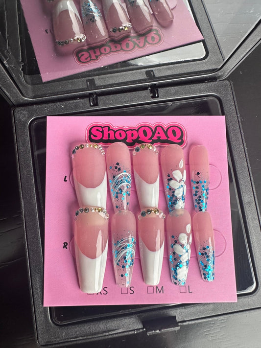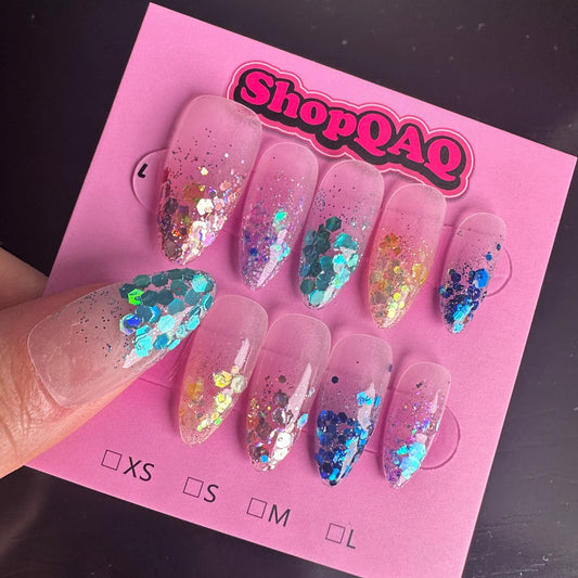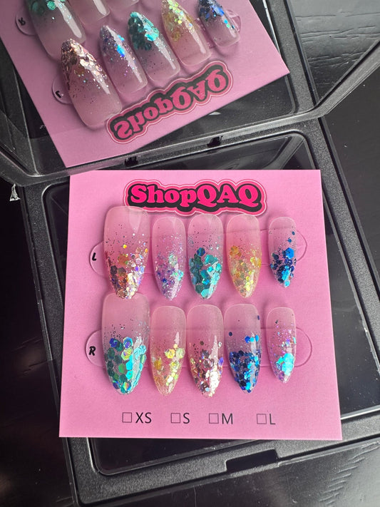 High-End Mermaid Chic | Handcrafted Press-On Nails – Summer Sparkle, Colorful Sequins, Premium Quality