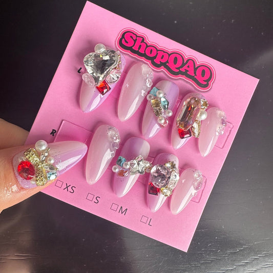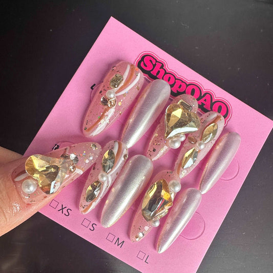 Honey Snow | Handcrafted Press-On Nails – Sweet Heart Design, Trendy and Durable, Easy-to-Wear, Removable
