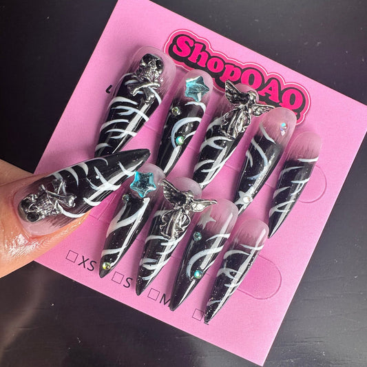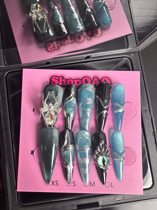 Yabi Culture Gothic Press-On Nails | Handcrafted Y2K Demon Spider Skull Dark Punk Removable Nail Tips