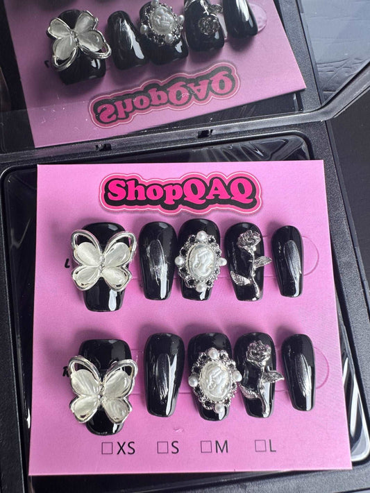 Rose Duke | High-End Handcrafted Press-On Nails – Punk Gothic Dark Chic Heavy Craftsmanship Retro Butterfly Design