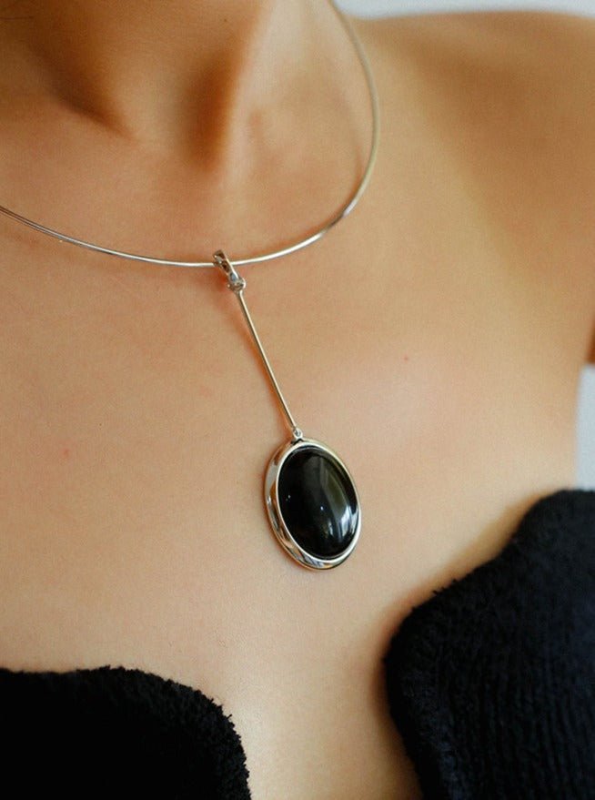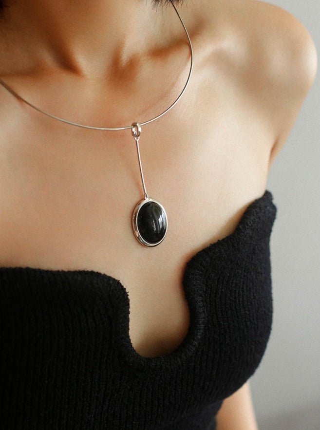 925 Silver Necklace: Wood-grain Marble&Black Onyx & White Mother of Pearl Pendant