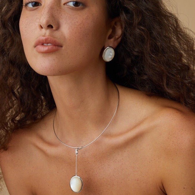Material: silver-plated/925 silver/black agate/white mother-of-pearl/wood-grain marble