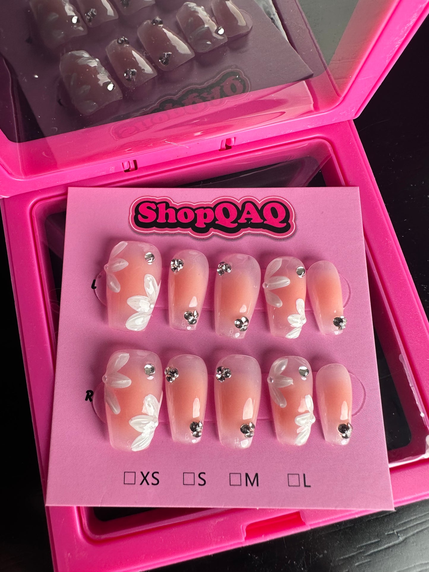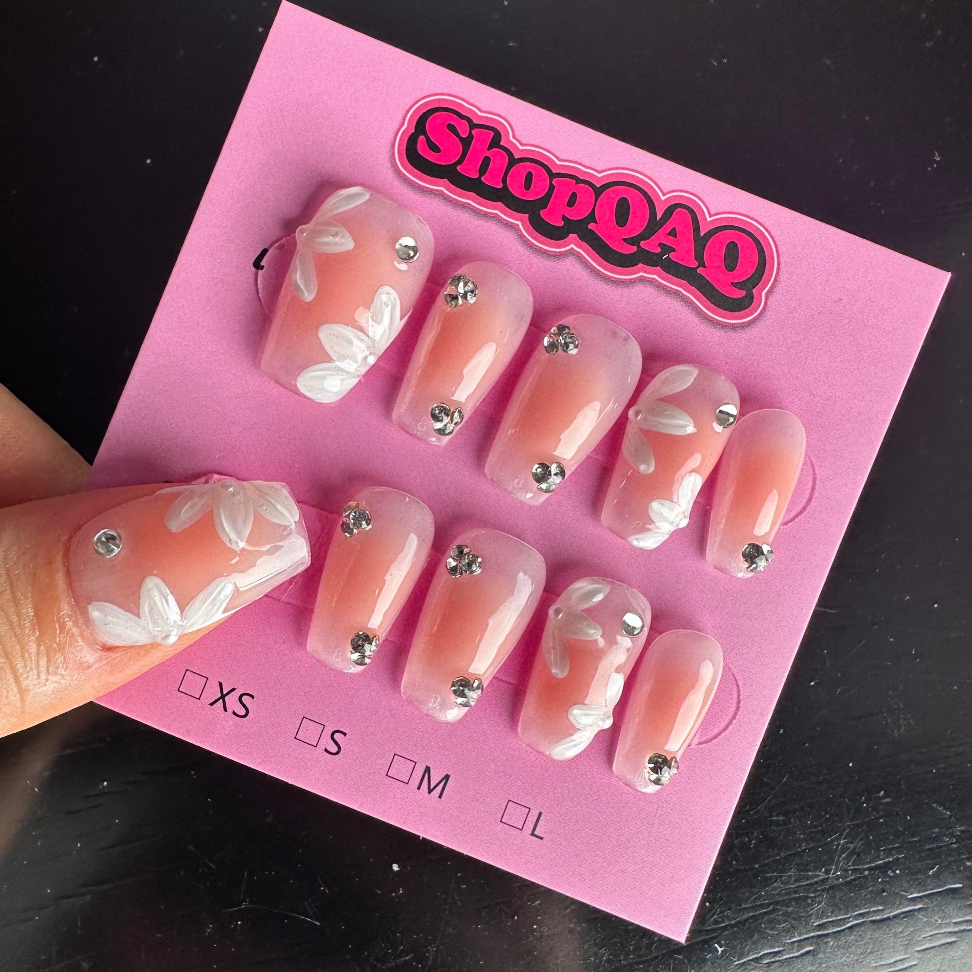 Experience the delicate beauty of our Handcrafted Gel Press-On Nails featuring a unique Water Mist Ice Flower design. These nails are meticulously handmade and photographed to showcase their true elegance. Perfect for adding a frosty, ethereal touch to your look, these nails are not only visually stunning but also reusable, offering both style and practicality.
